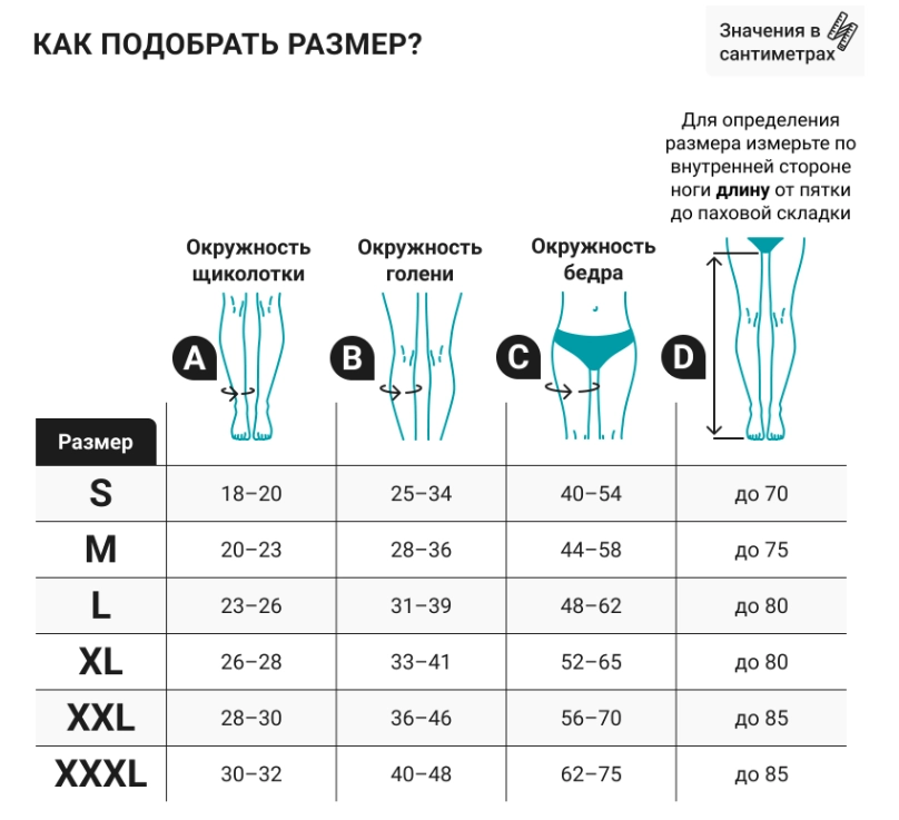 Подбор размера компрессионных чулок