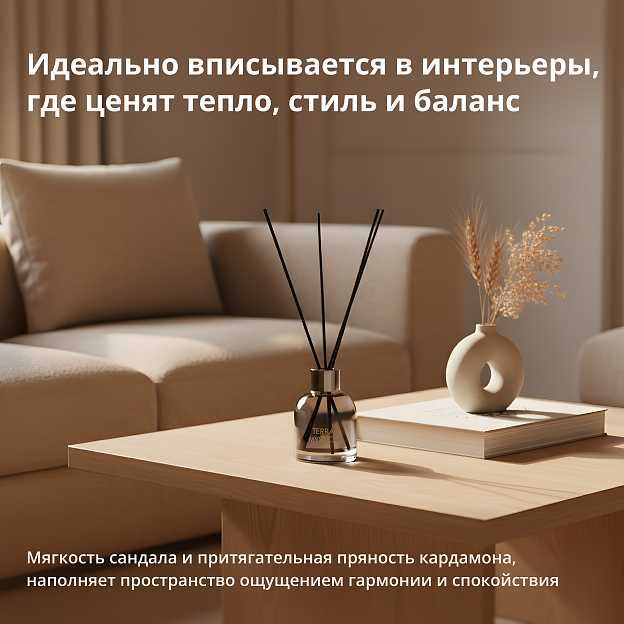 Ароматический диффузор Breesal Terra Mystica — проводник в мир спокойствия, утонченности и эстетики. Амбра раскрывается теплым смолистым шлейфом с медовой глубиной и легкой минералностью, создавая ощущение обволакивающего уюта. Сандал добавляет бархатистую древесную мягкость и медитативное спокойствие, выравнивая композицию и делая ее особенно стойкой. Кардамон вносит пряный, прохладно‑цитрусовый акцент с едва заметной остротой, оживляет звучание и придает аромату изысканную свежесть. Гармоничнее всего эта композиция будет звучать в гостиной, рабочем кабинете и зонах, где важны расслабление и тонкий, интеллигентный фон.