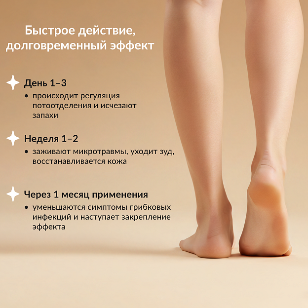 • восстанавливает естественный микробиом кожи стоп;