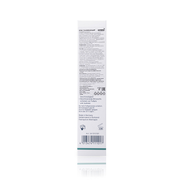 Зелёный бальзам для ног Gehwol Fusskraft 10105 помогает нормализовать потоотделение и предотвращает разложение пота, даря ногам свежесть и избавляя от неприятных запахов. Благодаря своим антисептическим свойствам, он защищает от грибковых инфекций и зуда между пальцами. В состав бальзама входят натуральные эфирные масла розмарина, лаванды и горной сосны, камфора и ментол.