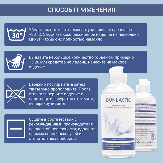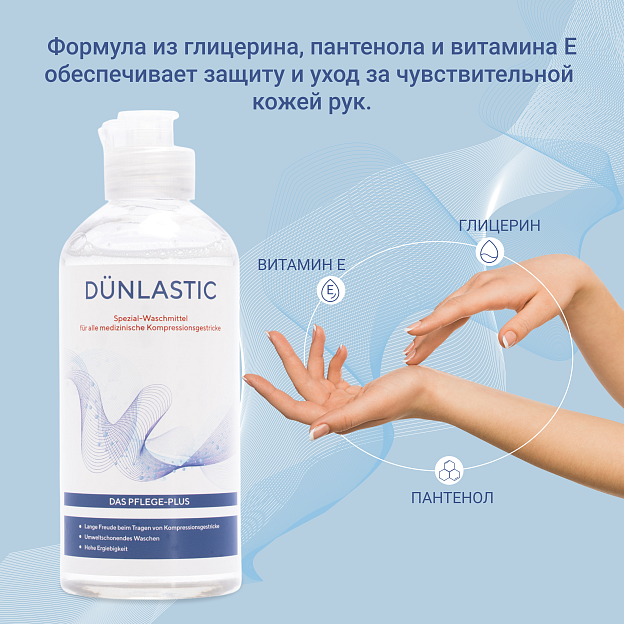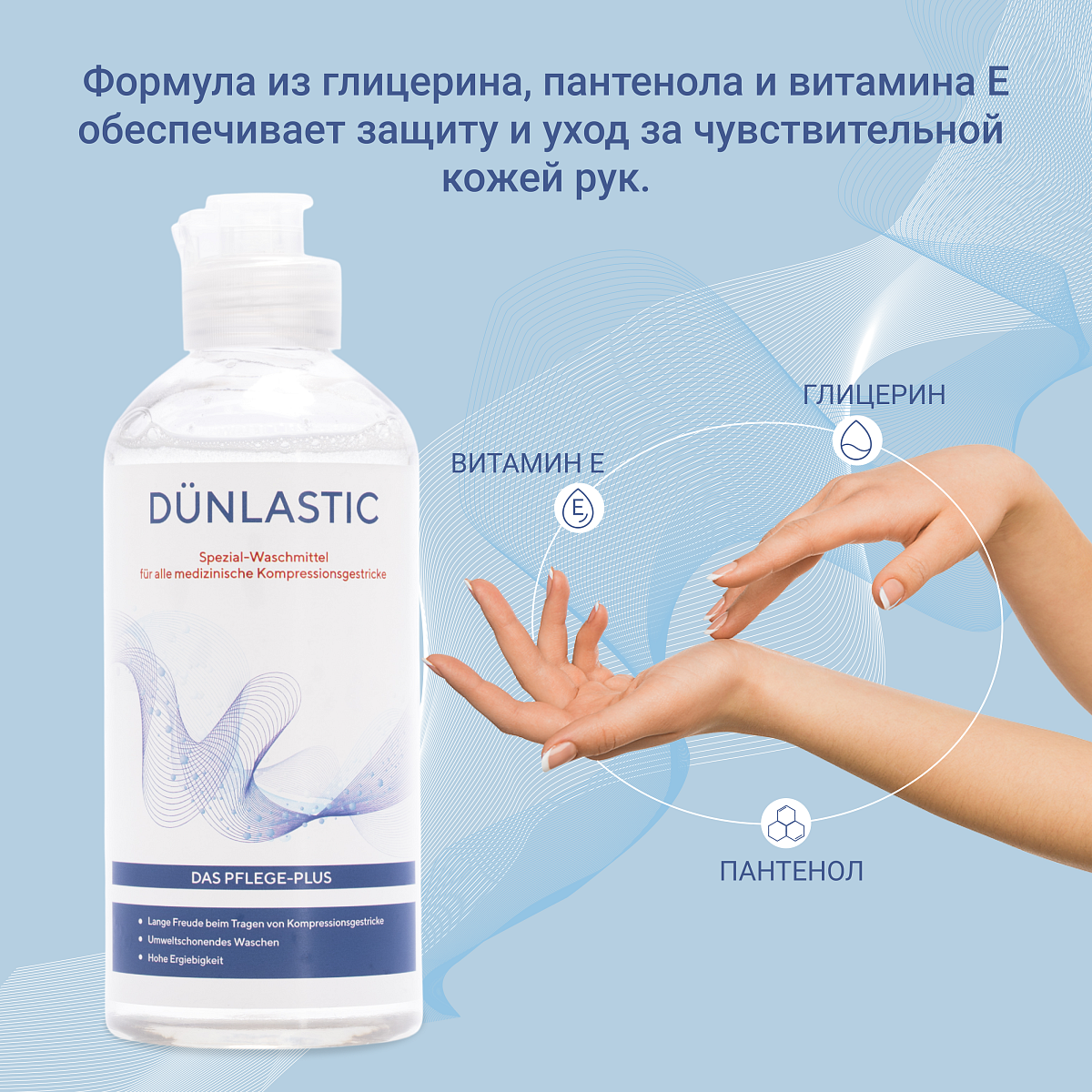 Гель DÜNLASTIC (ДЮНЛАСТИК), предназначен для деликатной стирки медицинских компрессионных изделий всех видов: