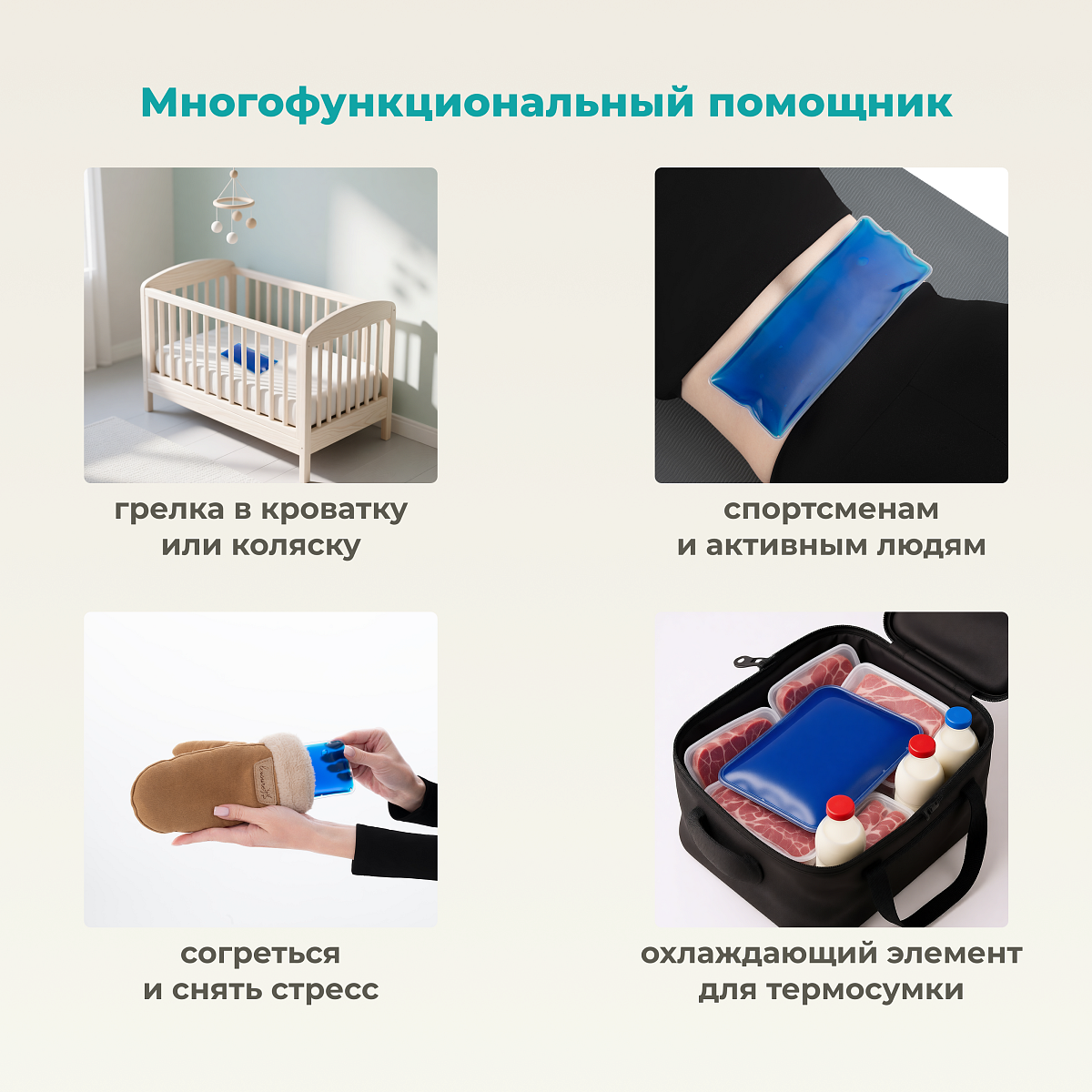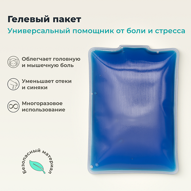 Криопакет гелевый охлаждающий (согревающий) предназначен для использования в бытовых целях, например, в качестве охлаждающего элемента для термосумок, переноски лекарственных средств, для быстрого охлаждения продуктов или напитков. Холодный компресс с помощью гелевого пакета GELEX помогает быстро облегчить боль, жжение и уменьшить отёк.