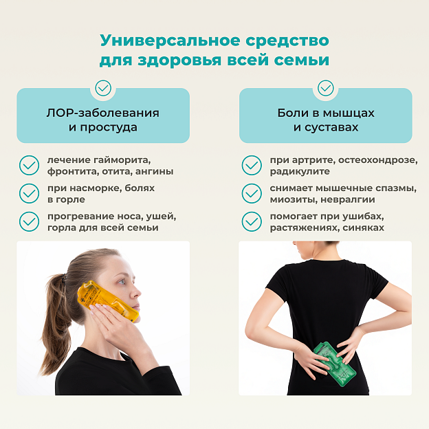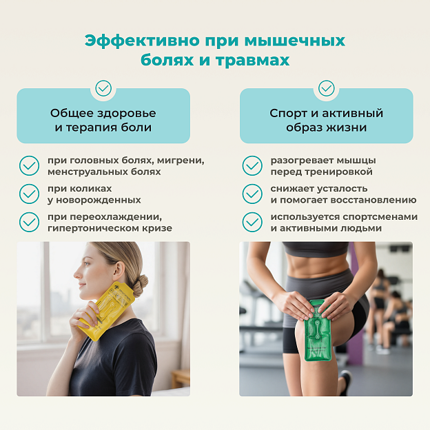 • Двойной режим: горячая терапия (+52°C) и холодный компресс (+4-6°C);