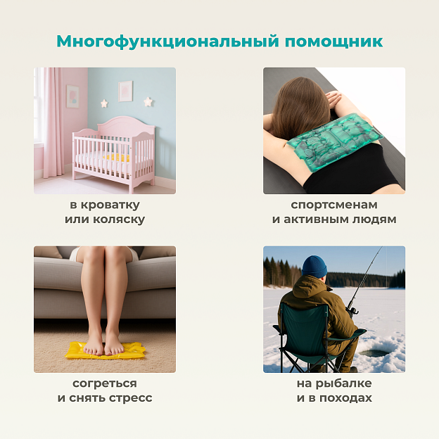 • многофункциональность: подходит для согревания в постели, охлаждения при травмах, использования в поездках.