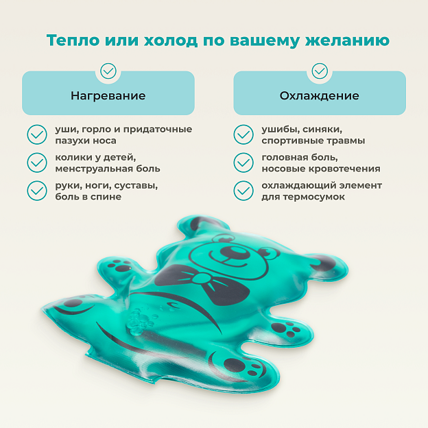 • двойной режим: мягкое прогревание (+52°C) и щадящий холодный компресс (+4-6°C);