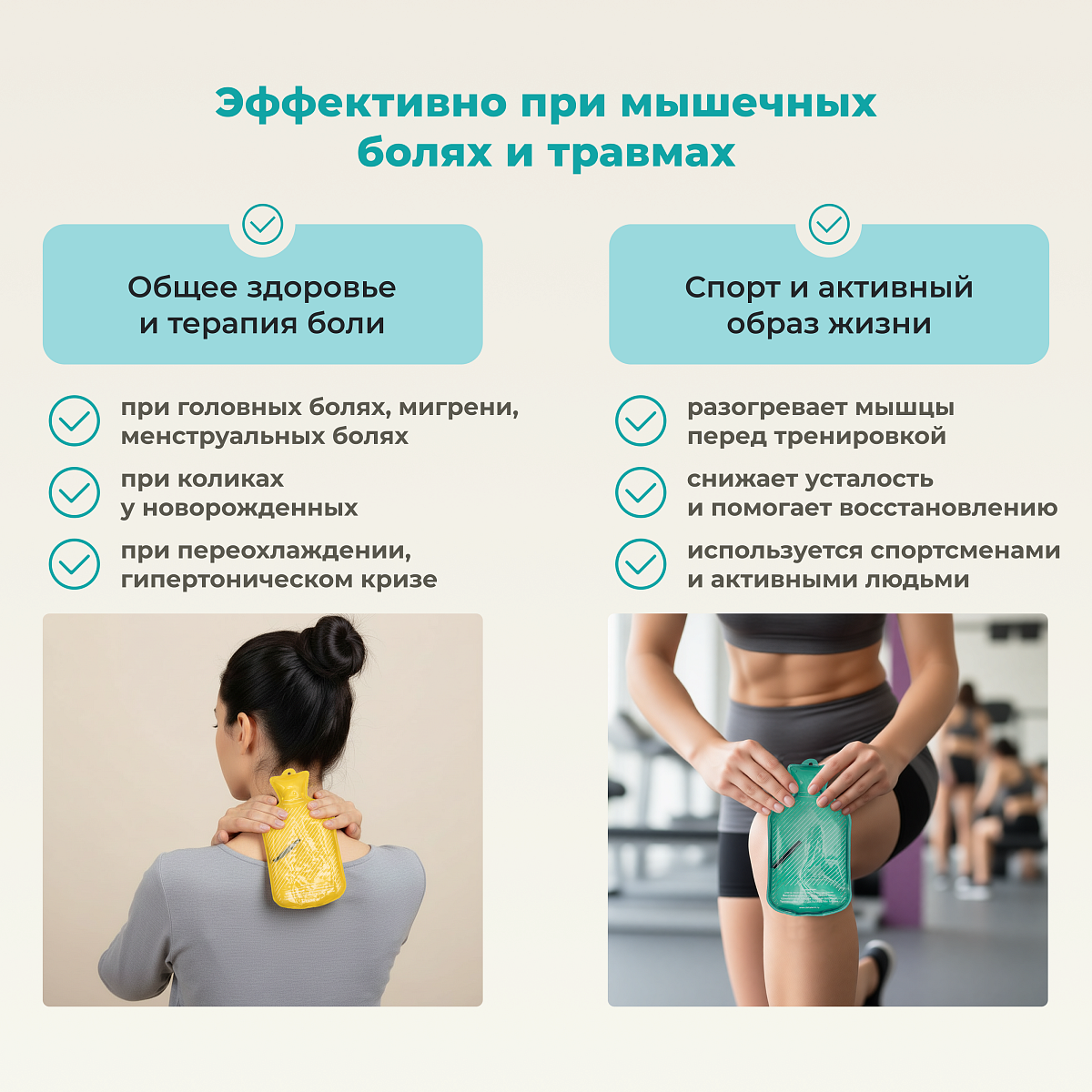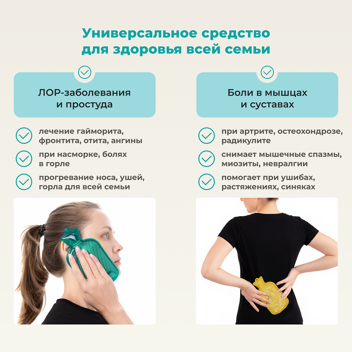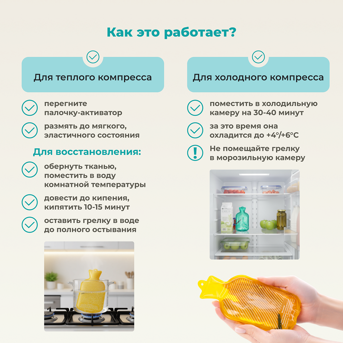 • двойной режим: интенсивное прогревание (+52°C) и холодный компресс (+4-6°C);
