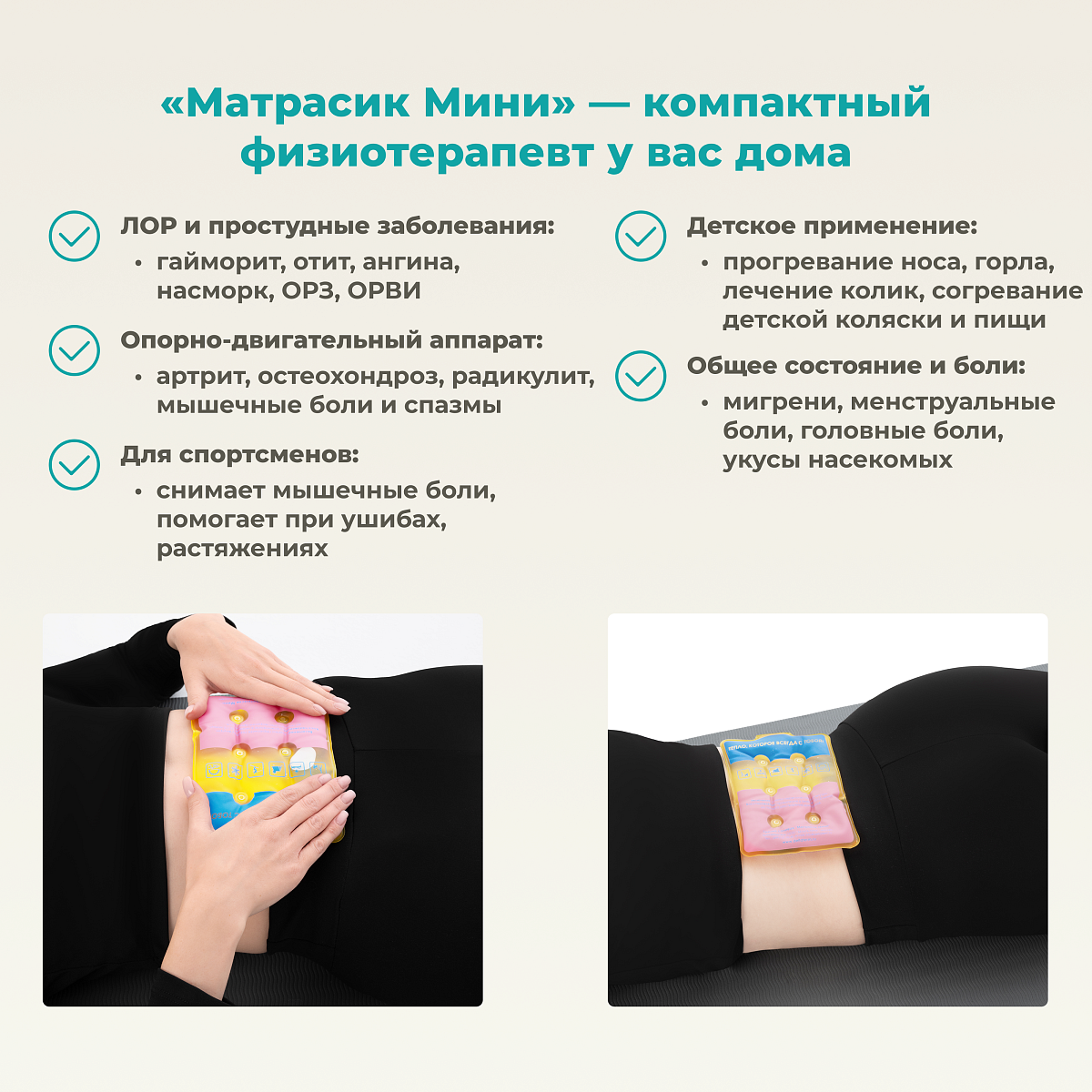 Ей можно прогреть животик, ушко, носик, горлышко, а также он заменит горчичник, не пугая и не раздражая при этом ребёнка.
