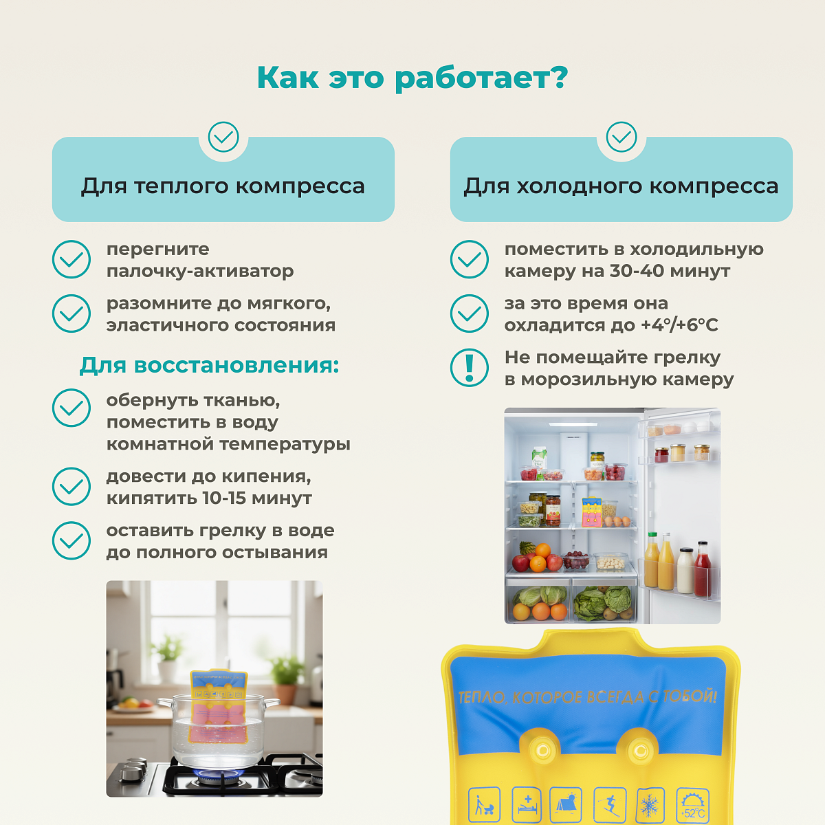 Спорт, фитнес и здоровый образ жизни - неотъемлемая часть нашей жизни, но к сожалению, во время тренировок случаются маленькие неприятности в виде растяжения мышц и легких ушибов. В этом случае, вам всегда на помощь придет наша солевая грелка.