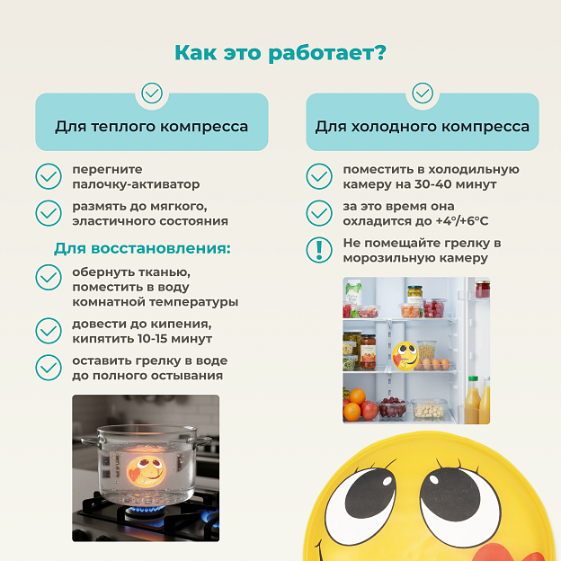 Вы можете использовать солевую грелку многократно! Просто прокипятите грелку в течение 15 минут, и она снова готова к работе!