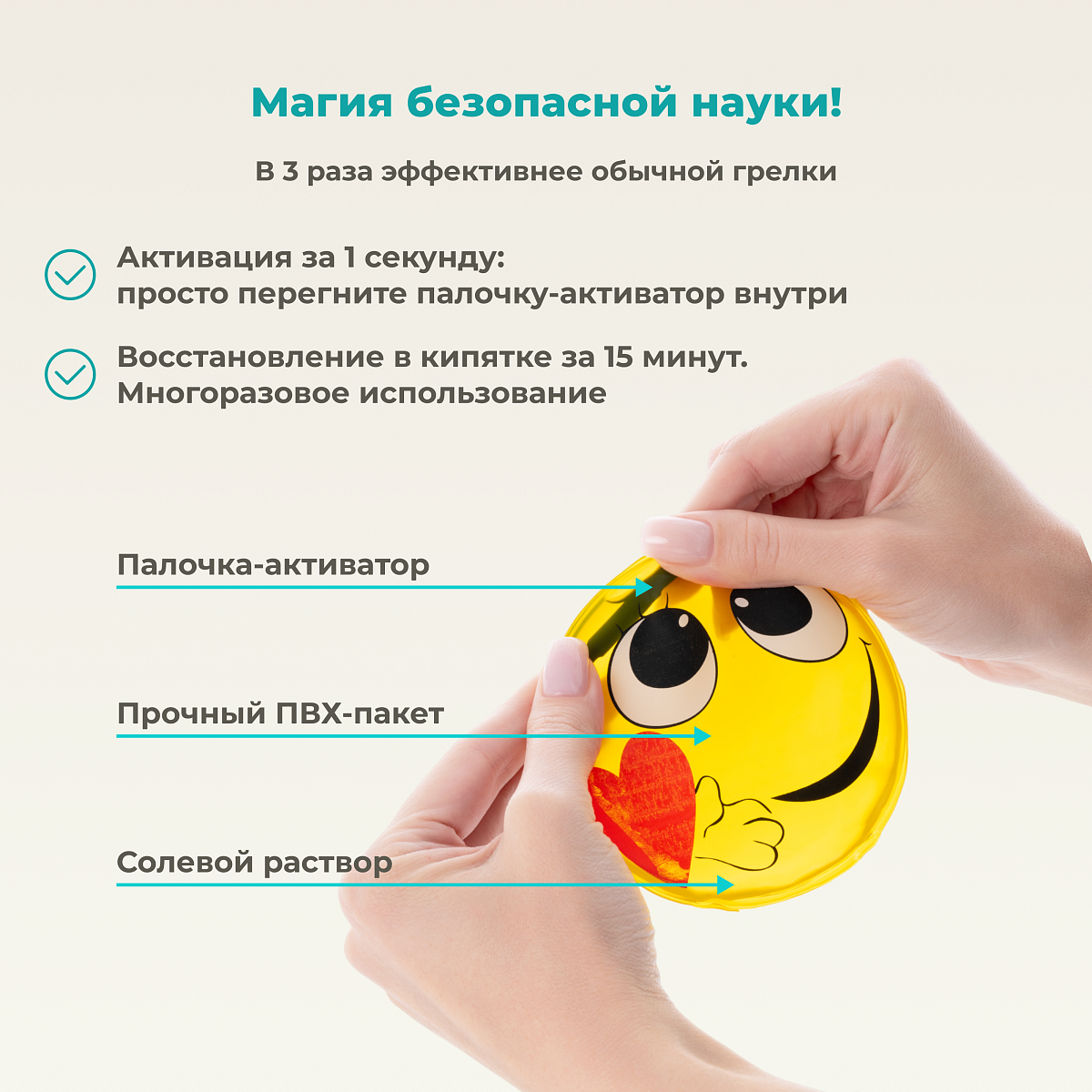 Грелки солевые по ТУ 9398-001-40239490-2007. Грелка малая. Смайл. симпатичный и милый подарок для родных, близких и просто хороших знакомых к любому празднику и просто в качестве подарка для души. Смайлик согреет вас не только своим теплом, но и привлекательным и неповторимым дизайном!