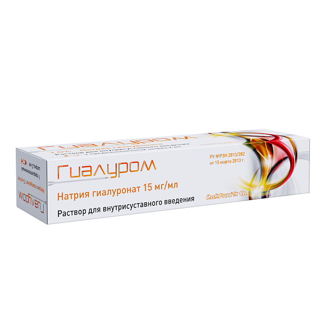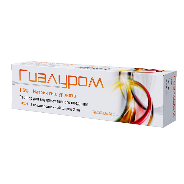 • 1,5%-й раствор гиалуроната натрия в одноразовом шприце объемом 2 мл;