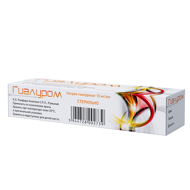 Гиалуром — стерильный вязкоэластичный раствор гиалуроната натрия, предназначенный для восстановления подвижности суставов и уменьшения болей при заболеваниях опорно-двигательного аппарата. Препарат представляет собой 1,5%-й раствор гиалуроната натрия в готовом шприце объемом 2 мл. Активное вещество получено методом ферментации микроорганизмов, а его структура идентична гиалуронату, вырабатываемому человеческим организмом. Средство эффективно снижает трение внутри сустава, возвращает естественную эластичность и амортизационную способность синовиальной жидкости.