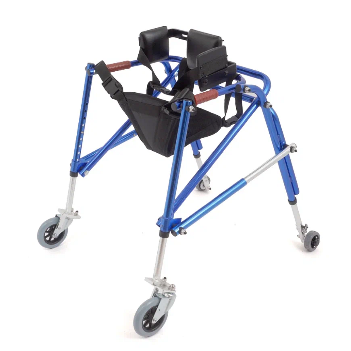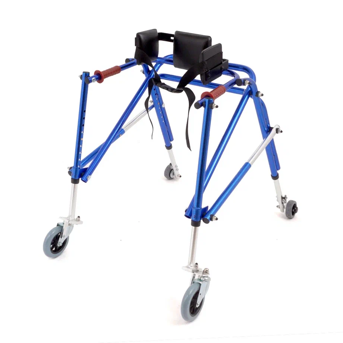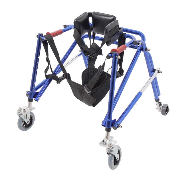 Легкая алюминиевая рама регулируется по высоте, позволяет точно подстроить ходунки под рост ребенка, а складывающийся каркас облегчает хранение и транспортировку. Наличие передних и задних колес делает опоры-ходунки удобными как для использования дома, так и в реабилитационных центрах.