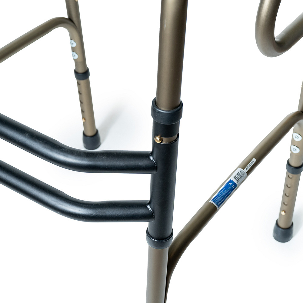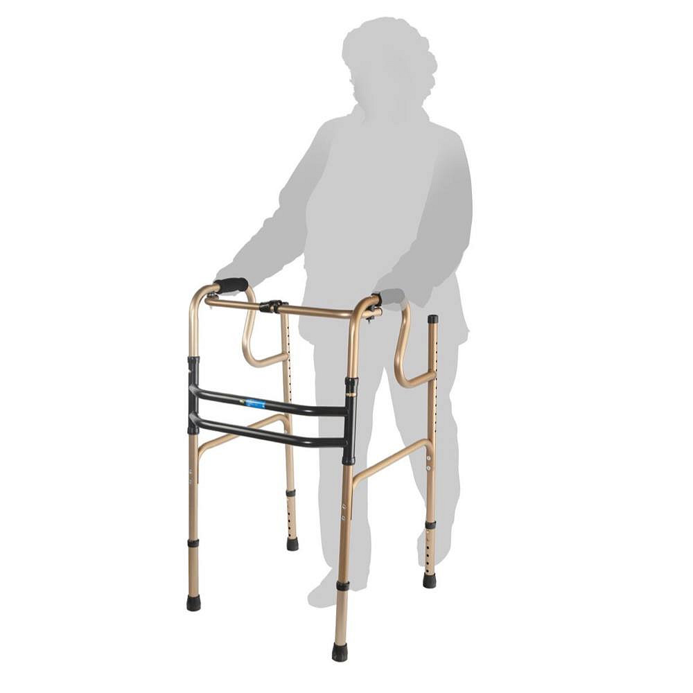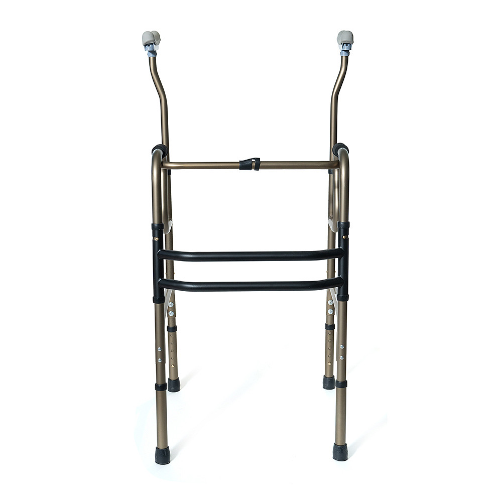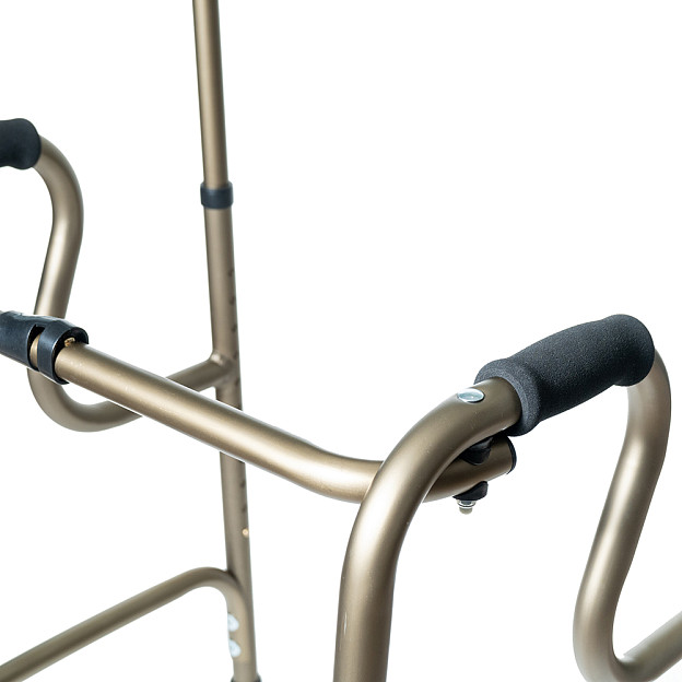 Двухуровневые шагающие опоры-ходунки СИМС-2 10189 со съемными подмышечными стойками и алюминиевой рамой весом 3,6 кг обеспечивают безопасное передвижение пользователей весом до 135 кг в больницах, дома и на улице. Складная конструкция не оставляет следов на полу, а регулировка высоты шагом 2,5 см подходит под рост 160-180 см. Расстояние между поручнями 53 см и подмышечные опоры создают стабильную поддержку при ходьбе.