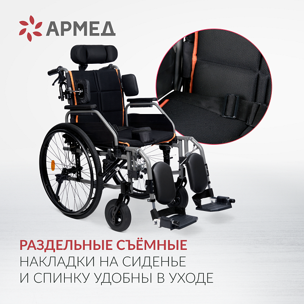 Armed 4000 — складное кресло-коляска, рассчитанное на пользователей ростом от 175 до 190 см и массой тела до 150 кг. Благодаря элементам для фиксации всего тела кресло подходит для людей с ДЦП. Регулируемая спинка, подголовник, подножки и элементы поддержки корпуса позволяют настроить посадку под индивидуальные особенности, обеспечивая комфорт и безопасность. Быстросъемные задние колеса и антиопрокидывающие устройства повышают маневренность и устойчивость при преодолении порогов и узких проемов.
