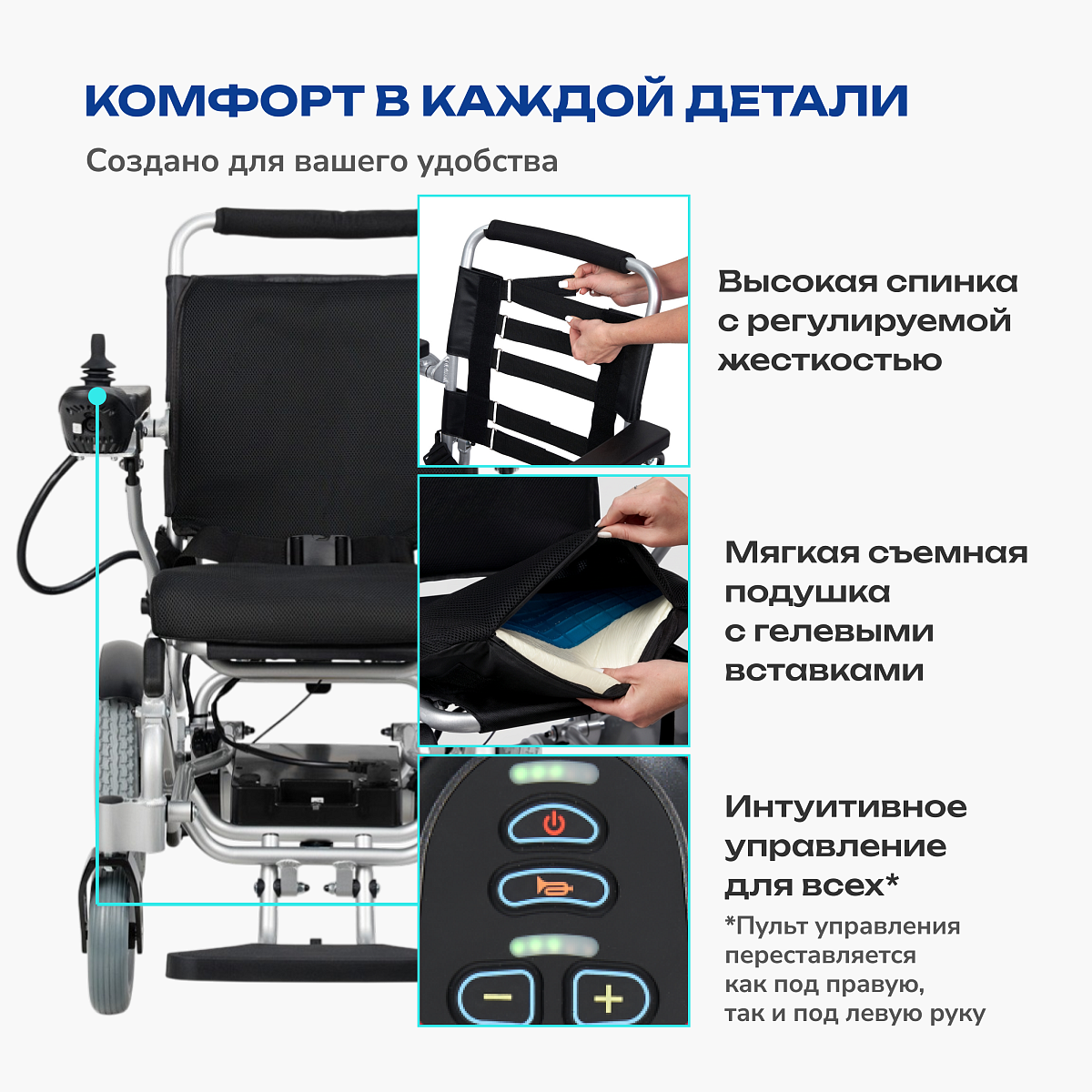 • пульт управления, который можно установить под левую или правую руку, делает управление интуитивно понятным и доступным.