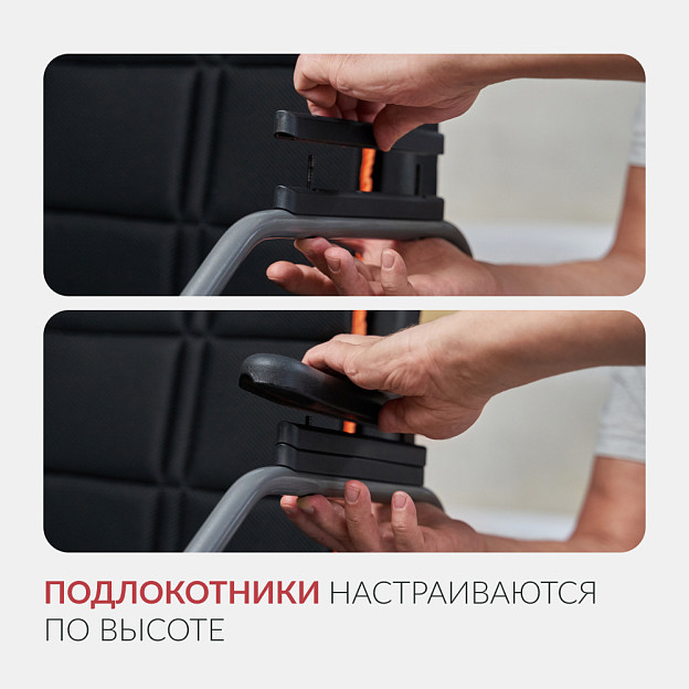 • съемные откидные подлокотники, регулируемые по высоте, со скошенной формой, чтобы подъехать вплотную к столу;