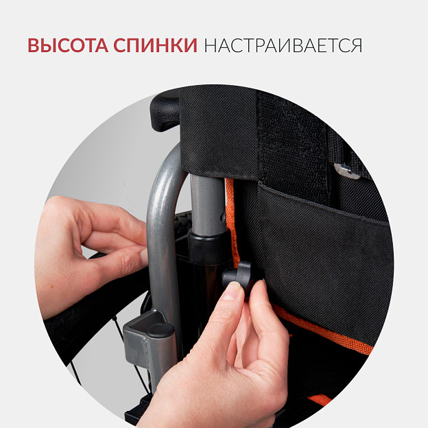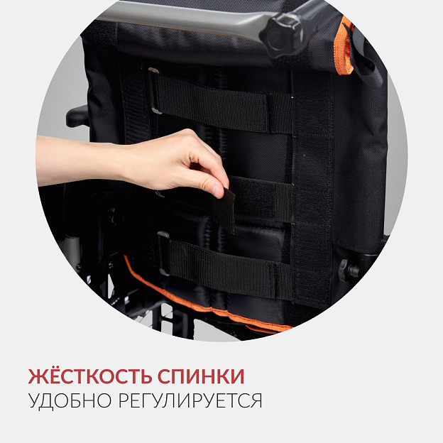 Многочисленные регулировки (высота, глубина, угол наклона кресла) и мягкие элементы (накладки, опоры под голень, поясной ремень) делают модель удобной для длительного нахождения в коляске в течение целого дня.