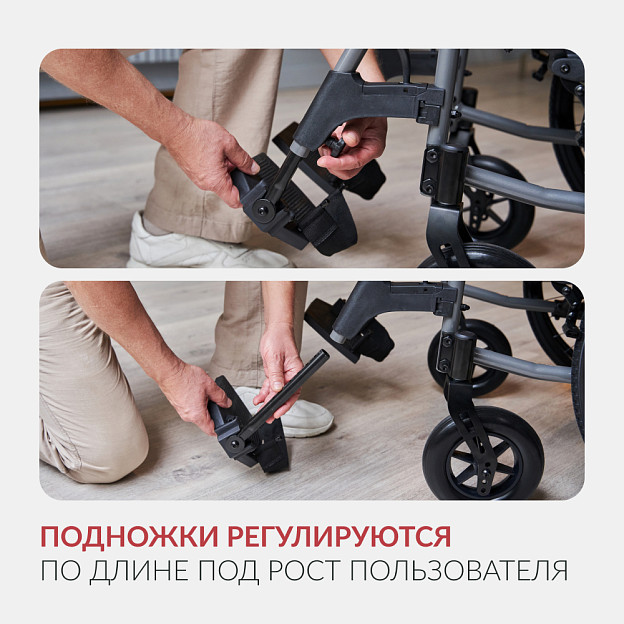 • две съемные поворотные подножки, регулируемые по высоте, с мягкими опорами под голень.