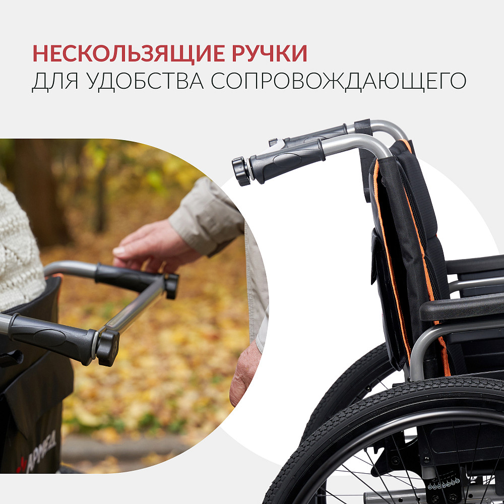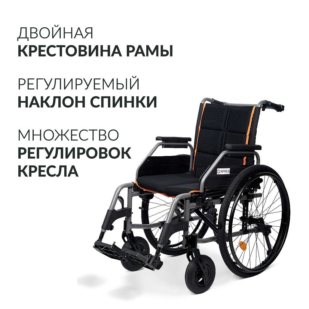 Кресло-коляска Armed 4000-1 рассчитана на пользователей с различной комплекцией (допустимая нагрузка до 150 кг) и подходит тем, кому важны комфорт и возможность тонкой настройки посадки. Складная рама из металлического сплава позволяет быстро сократить габариты для хранения и перевозки, шины на передних и задних колесах обеспечивают плавный ход при использовании на улицах и по неровным покрытиям.