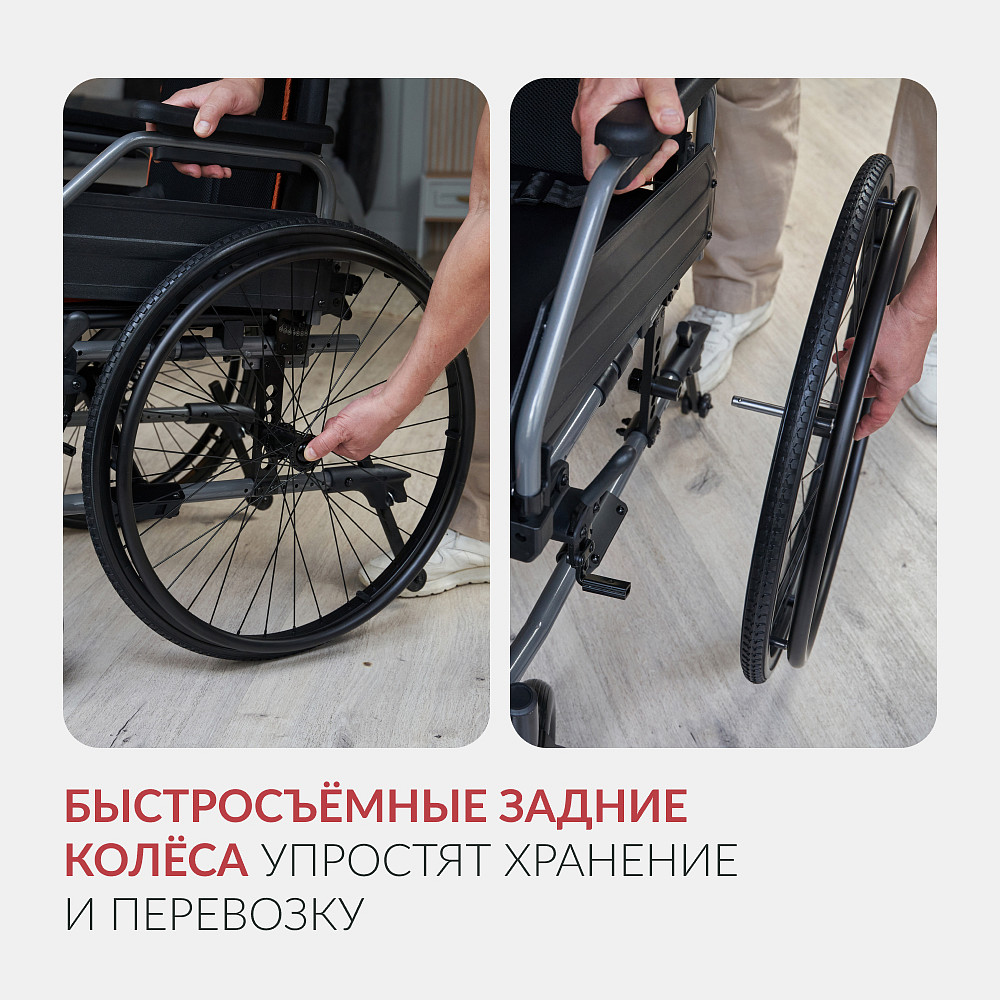 • быстросъемные задние колеса для удобства хранения и транспортировки;