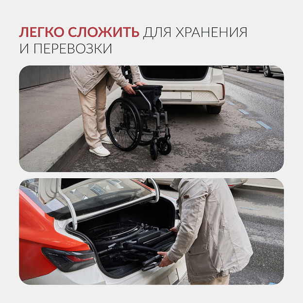 • складная рама и быстросъемные задние колеса облегчают хранение, перевозку и проход через узкие проемы и лифты;