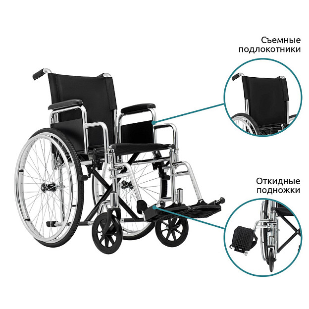 • регулируемые по длине подножки и съемные подлокотники делают модель удобной в эксплуатации;