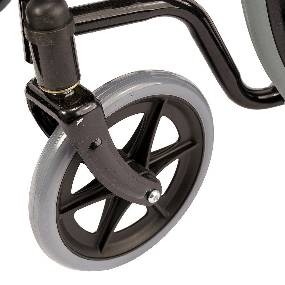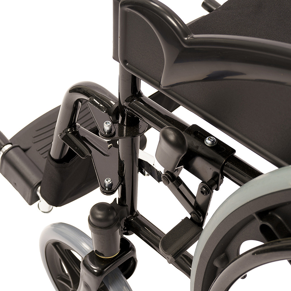 Кресло-коляска СИМС-2 Barry D5 — компактная модель со складной рамой для удобного передвижения по дому. Вес изделия — всего 17 кг, а максимальная нагрузка — 100 кг. В сложенном состоянии коляска занимает очень мало места — ее ширина составляет 26 см. Это удобно для хранения, так как кресло помещается в багажник легкового авто, шкаф или балкон.