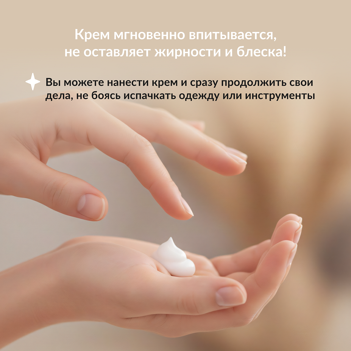 Дополнительно крем содержит компоненты с противомикробным и противогрибковым действием (клотримазол, бисаболол), что особенно актуально для специалистов, часто контактирующих с водой и людьми. Питательные ингредиенты — пантенол и масло жожоба — отвечают за восстановление и ощущение «ухоженности» кожи.