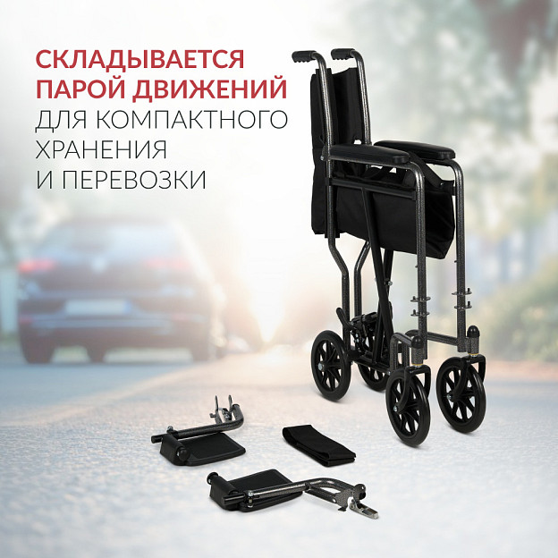 • Благодаря складной раме кресло компактно хранится и транспортируется;