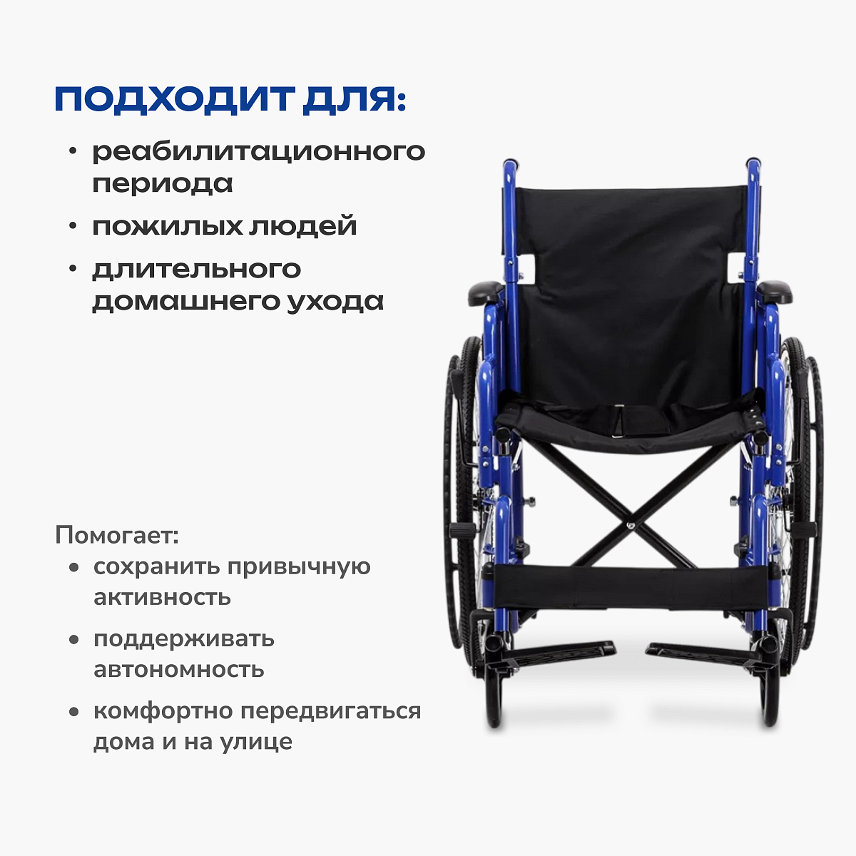 • повышает мобильность и позволяет пользователю сохранять активность при прогулках и бытовых перемещениях.