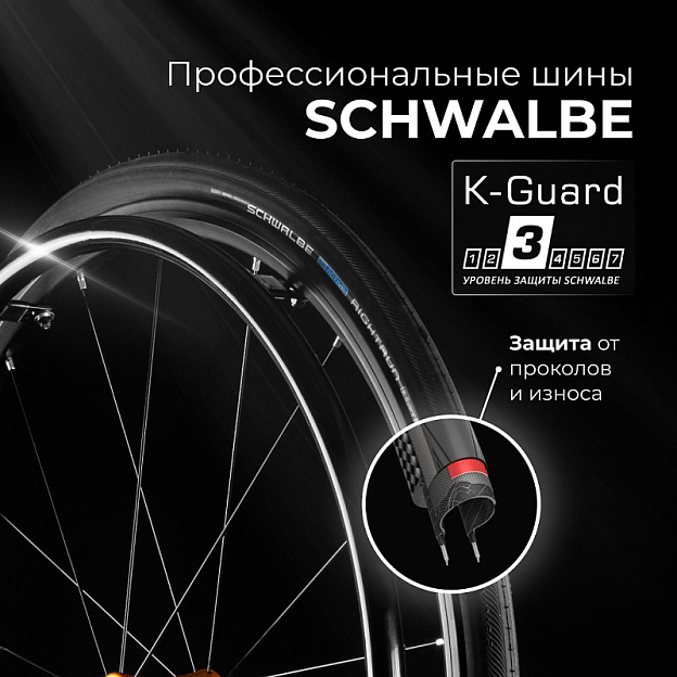 • Задние колеса с покрышками Schwalbe RightRun с защитным слоем от проколов