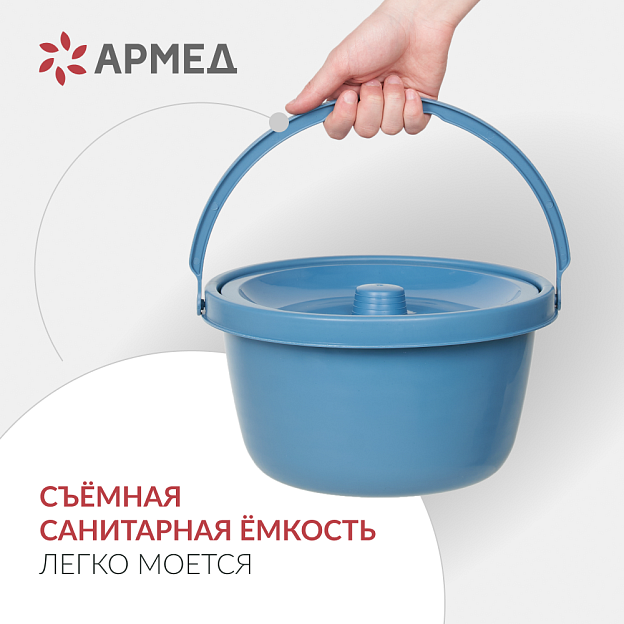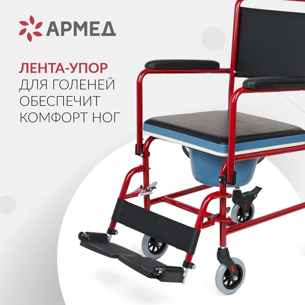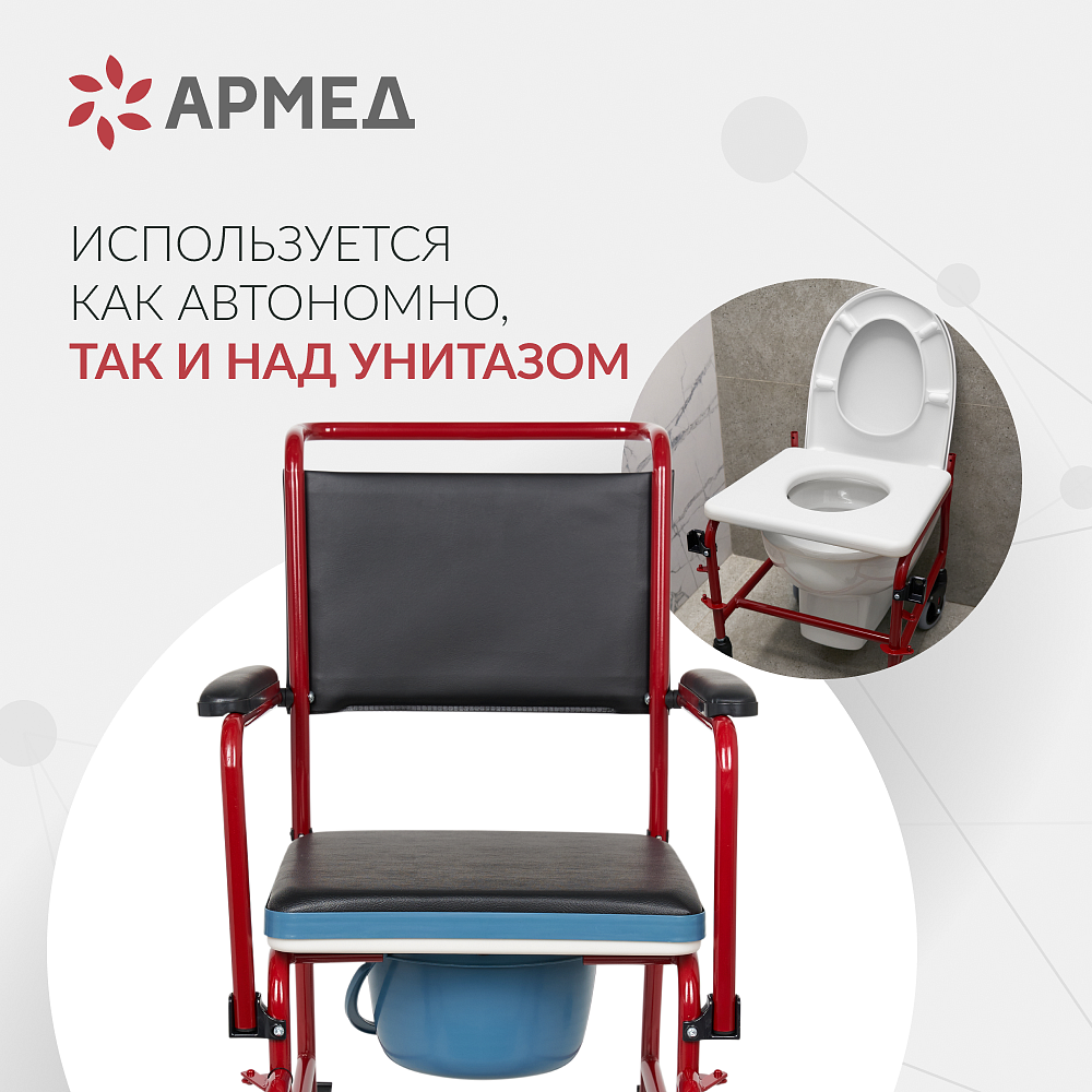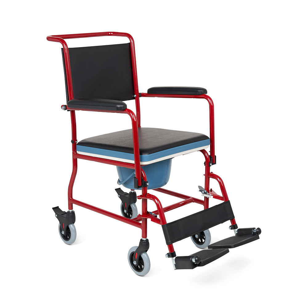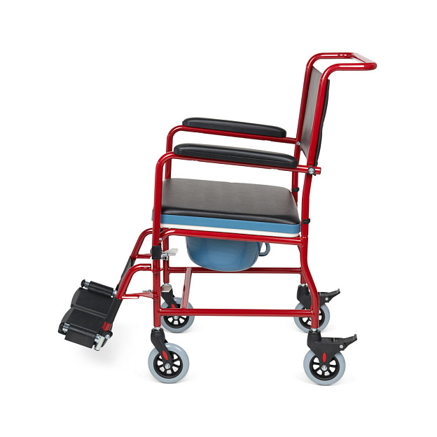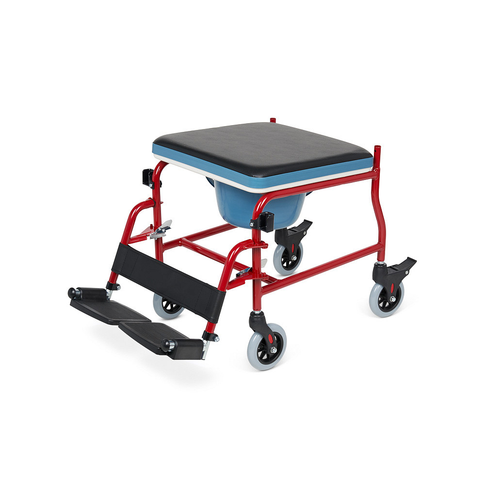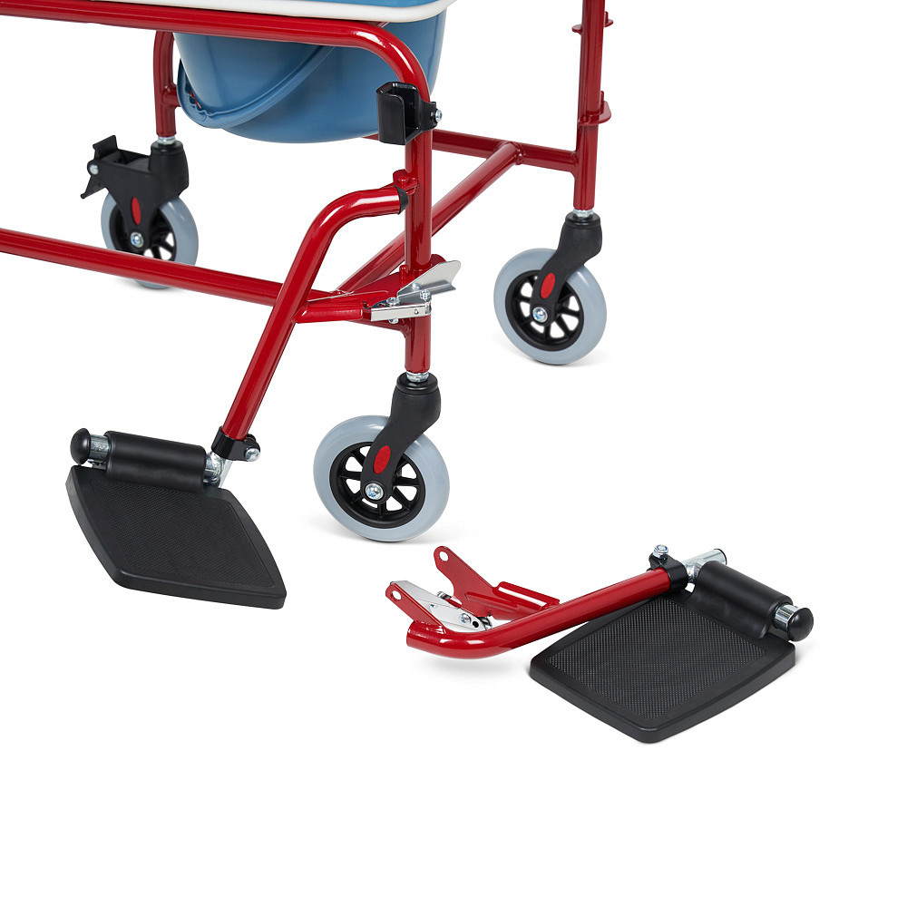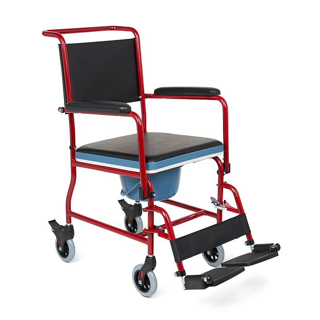 Кресло-туалет Armed KR692 с разборной рамой из металлического сплава сочетает функции транспортного средства и санитарного оборудования для пользователей до 130 кг. Съемная санитарная емкость из пластика с мягким сиденьем из искусственной кожи и съемные откидные подножки, регулируемые по высоте, обеспечивают комфорт и гигиену. Педальные тормоза на цельнолитых колесах и откидные подлокотники гарантируют безопасность и удобный трансфер.