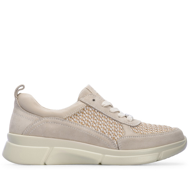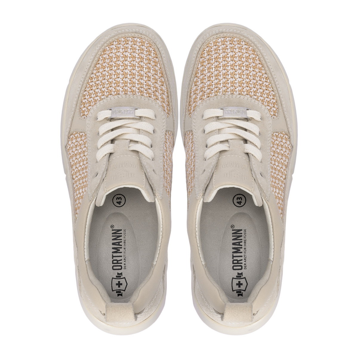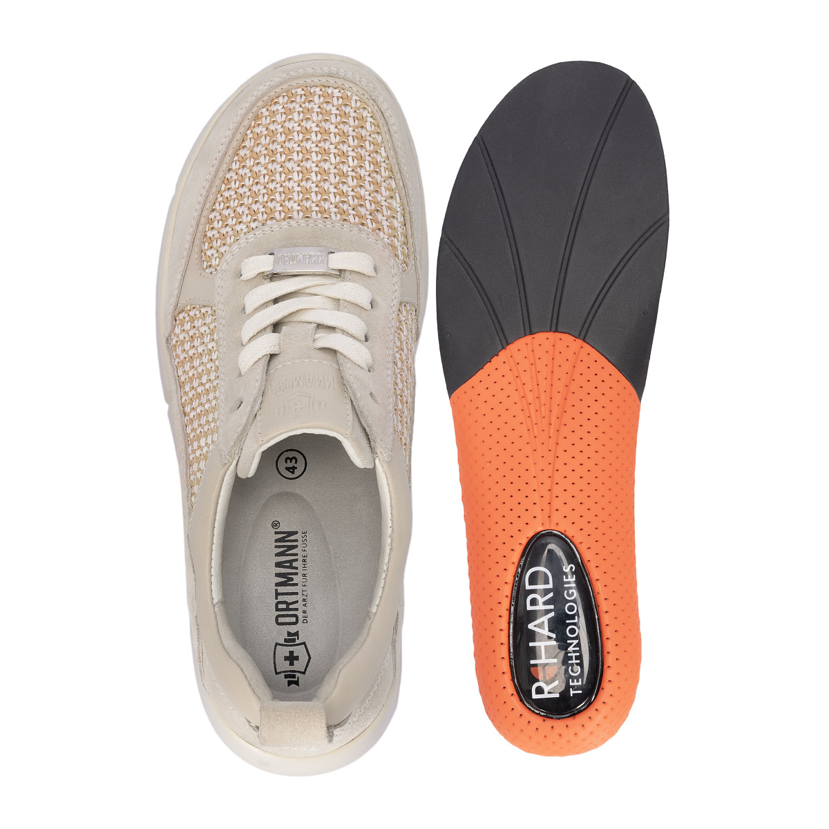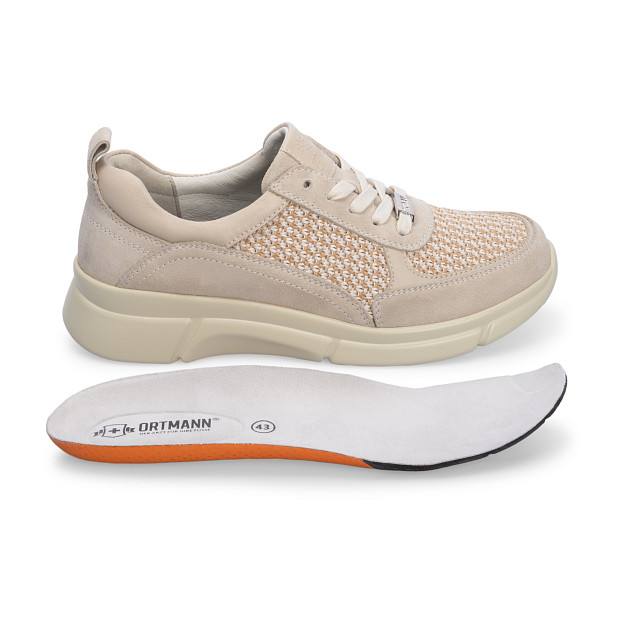 Женские ортопедические кроссовки Ortmann Comfort Anina — легкая дышащая модель, выполненная из сочетания натуральной кожи, замши и дышащего текстурного текстиля. Конструкция обуви мягко подстраивается под стопу и подходит для повседневной носки и долгих прогулок. Особое расположение швов и увеличенная внутриобувная конструкция учитывают потребности женщин с широкой стопой. Анатомическая пяточная часть с углублением и поддержкой сводов помогает стопе не заваливаться внутрь, сохраняя более устойчивое положение при ходьбе.