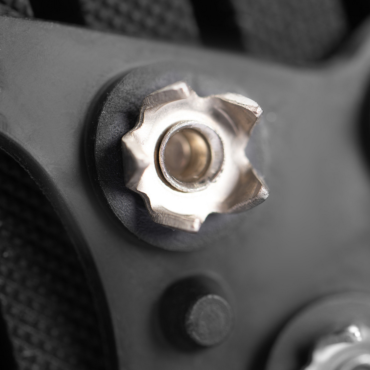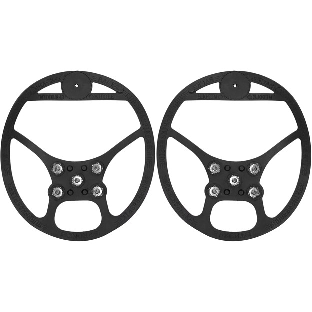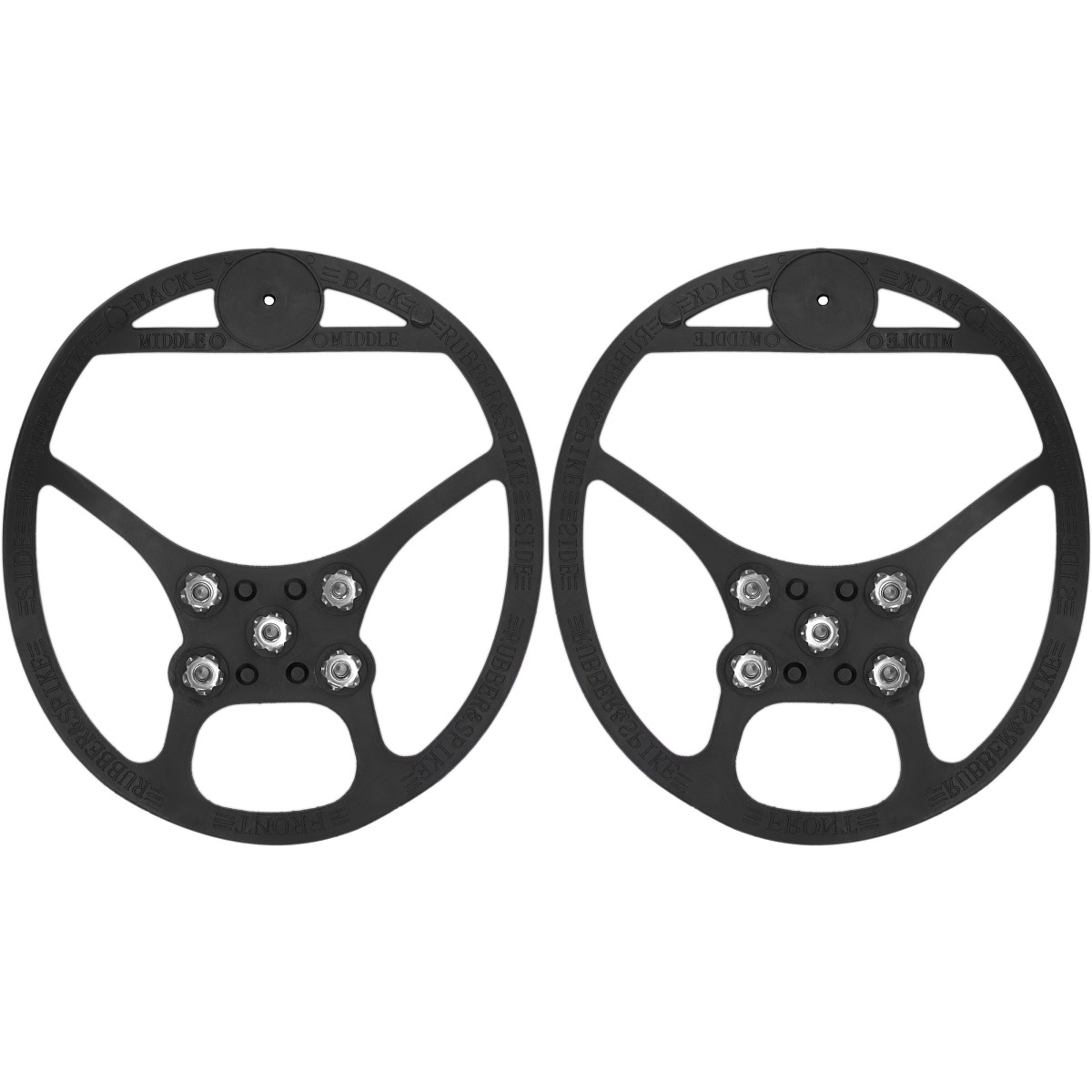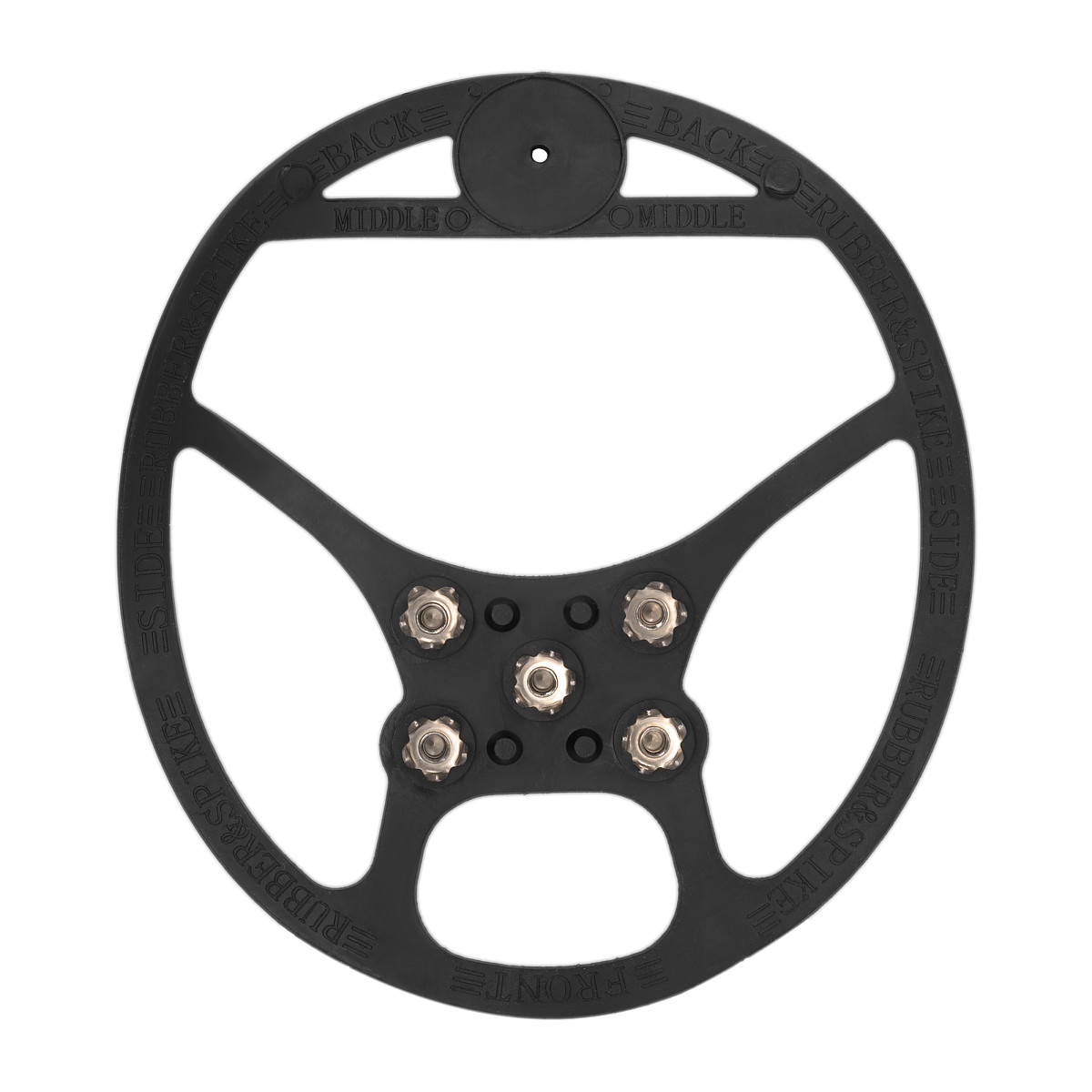 • оснащены пятью прочными металлическими шипами‑звездочками, которые обеспечивают устойчивость на льду и мокром асфальте;