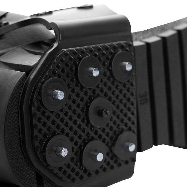 • шипы расположены на пятке: это повышает устойчивость при ходьбе и распределяет нагрузку равномерно;
