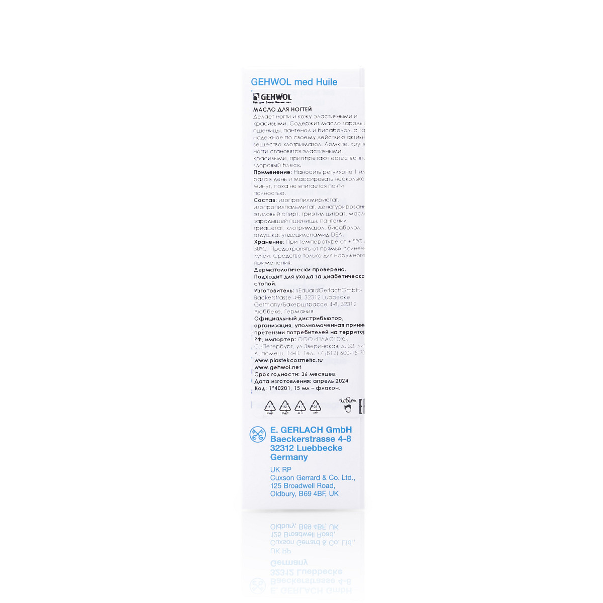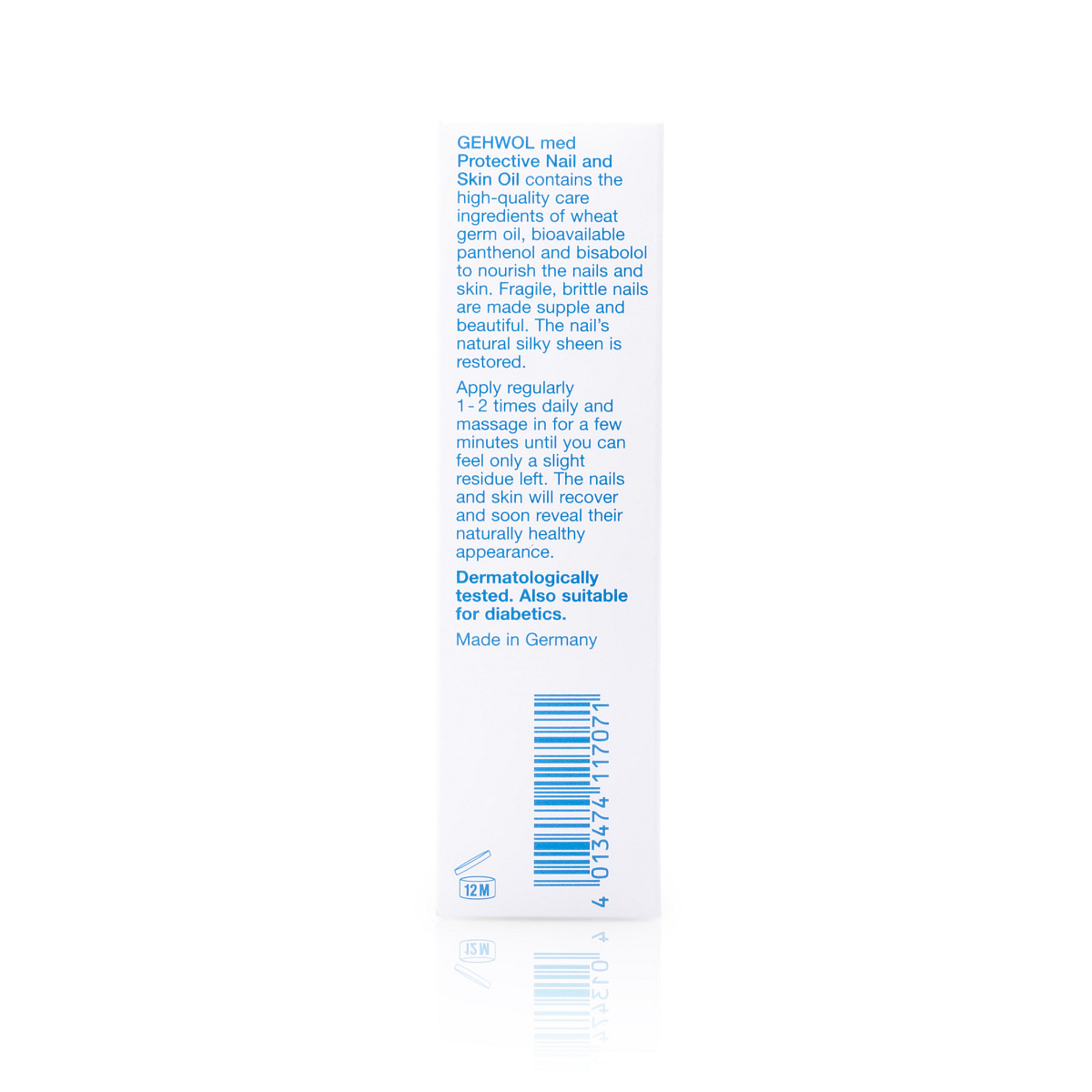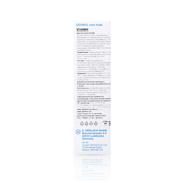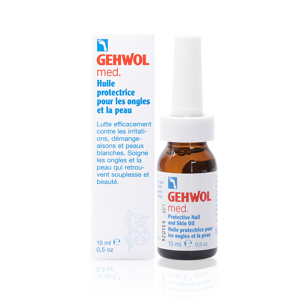 Масло для ногтей и кожи Gehwol Nagel-und Hautschutz-Ol обогащено экстрактом пшеничных зёрен, богатых витаминами A, E и D, лецитином и полиненасыщенными жирными кислотами. Это богатство придаёт вашим ногтям и коже молодость, свежесть, способствует регенерации и обновлению клеток, замедляя процесс старения. Благодаря этому маслу ваша кожа станет эластичной и упругой, а ногти — гладкими и блестящими. Клотримазол в составе продукта защитит ваши ногти от грибковых инфекций и предотвратит возможные заражения после маникюра или педикюра.