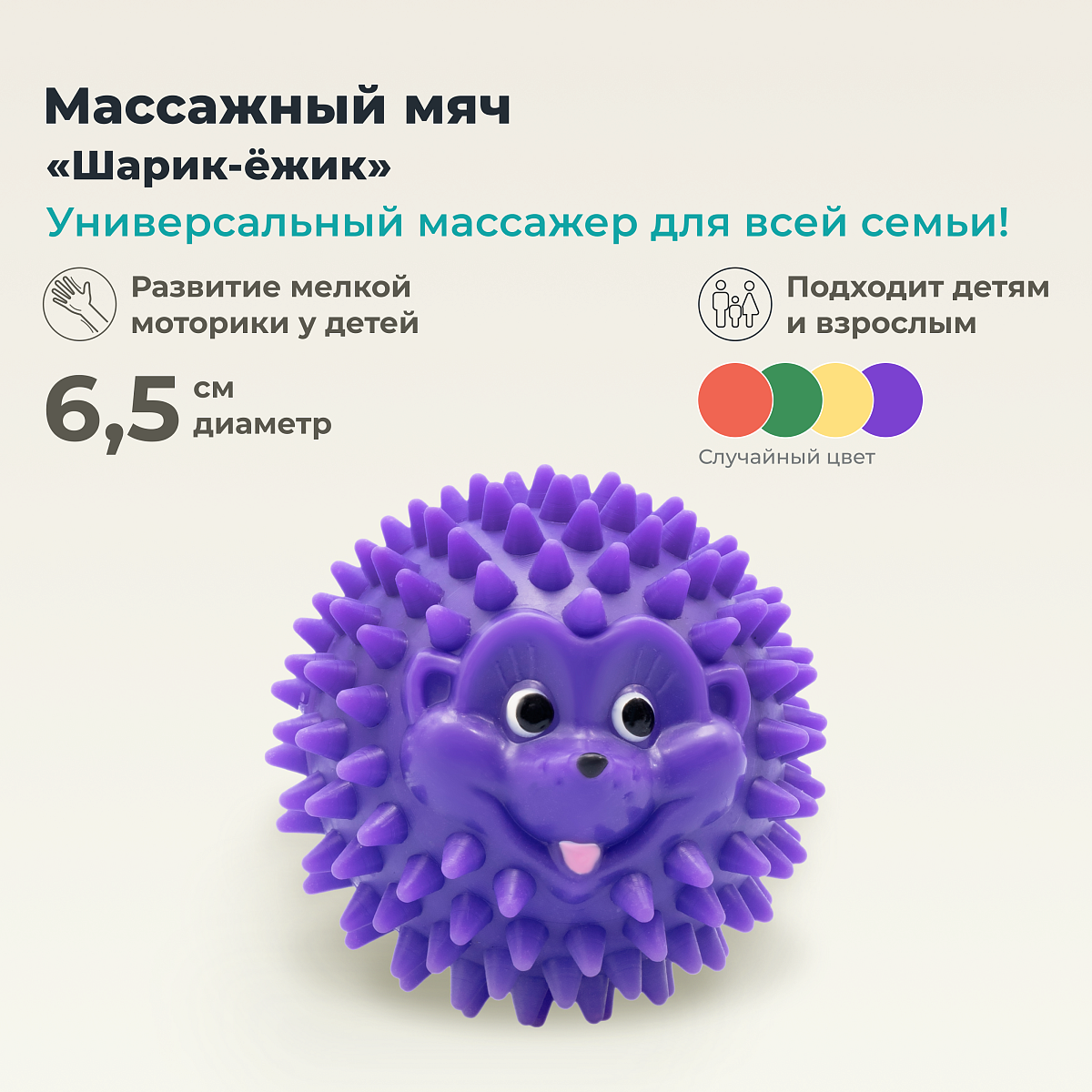 Массажный мяч изготовлен из гибкого пластика с шипами и выполнен в виде весёлого ёжика. Он идеально подходит для массажа маленьких детей, развивая их мышление, координацию движений и моторику пальцев.