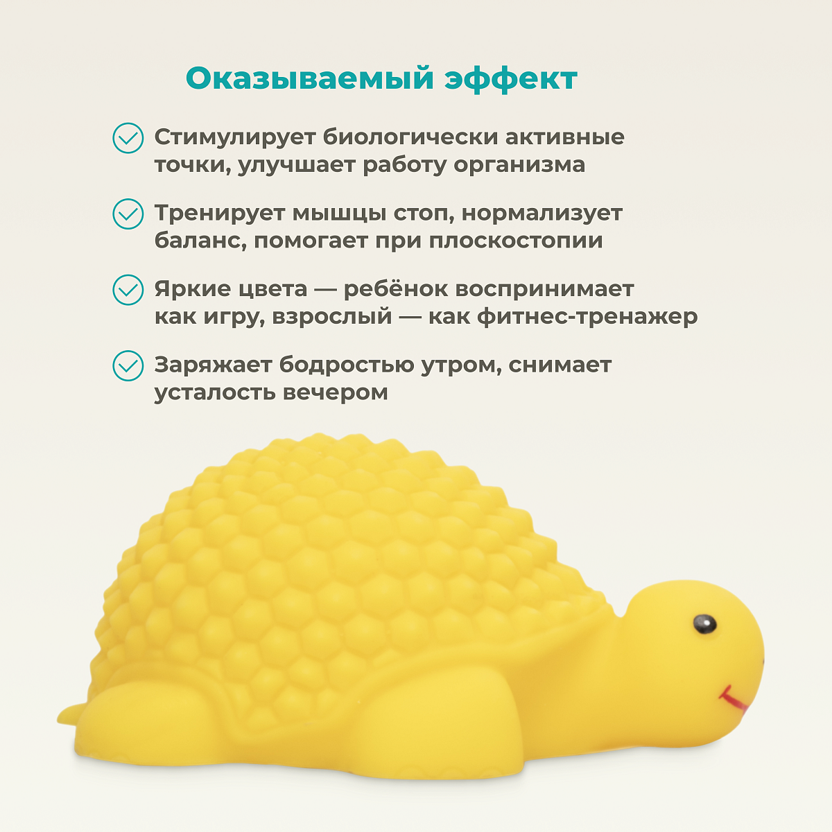 Массажные шипы стимулируют биологически активные точки на стопах ног, что положительно сказывается на всём организме, так как на стопах расположено множество акупунктурных точек, связанных с различными органами.