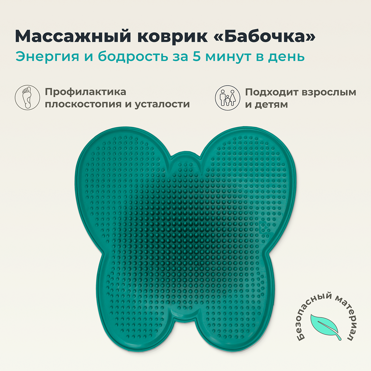 Массажный Коврик ДЕЛЬТА-ТЕРМ бабочка, зеленый