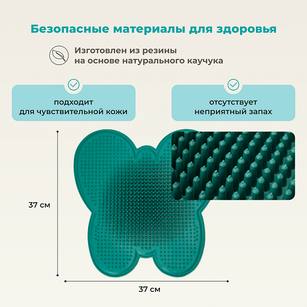 Массажный коврик Дельта-Терм «Бабочка» — эффективный тренажер для стоп, выполненный в форме изящной бабочки. Уникальная особенность модели — зональное распределение массажных элементов: более высокие выступы расположены в зонах акупунктурных точек, а более низкие — в области свода стопы. Такое строение повторяет естественный рельеф стопы и обеспечивает максимально физиологичное воздействие. Изделие состоит из резины на основе каучука и сохраняет упругость даже при постоянном использовании.