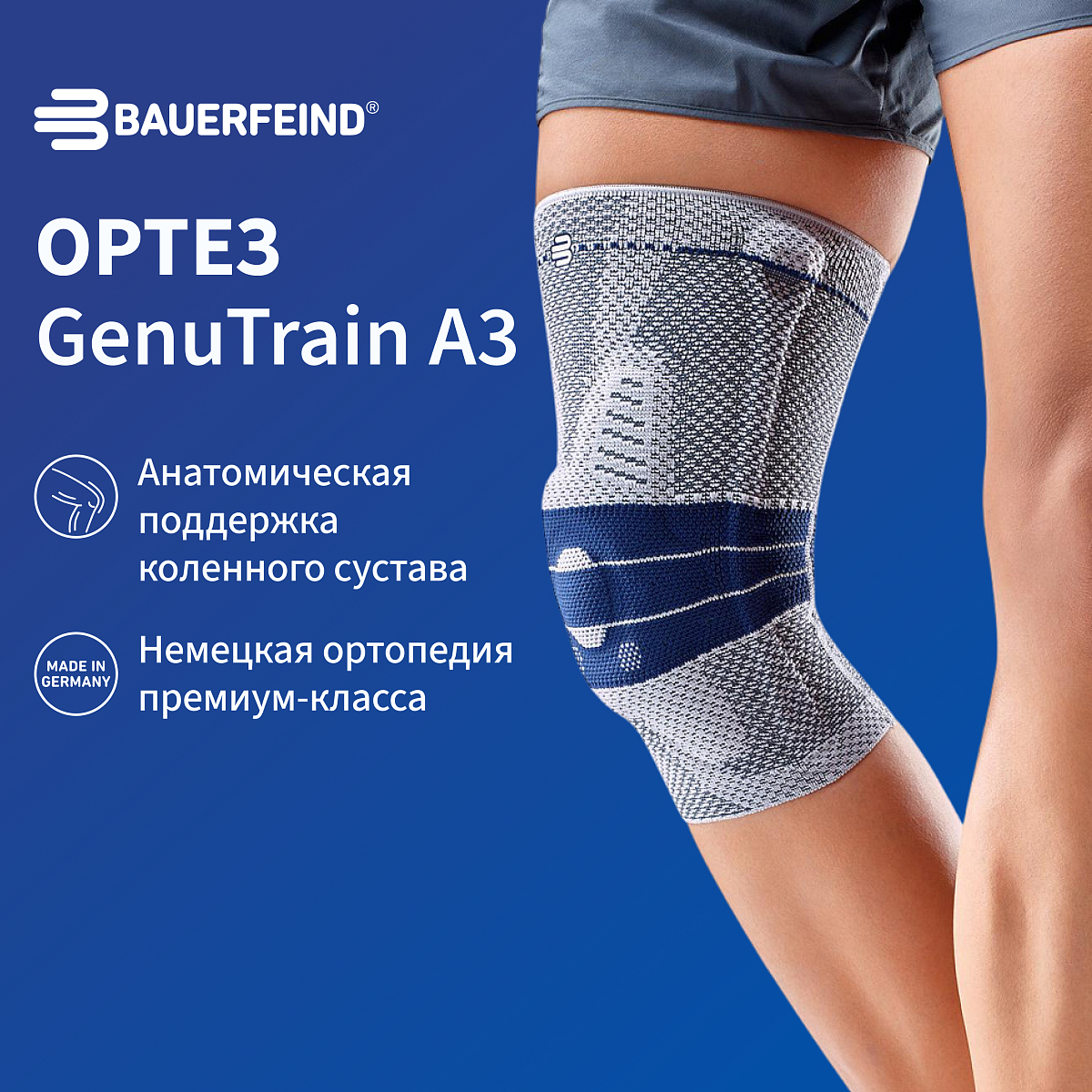 Ортез на коленный сустав Bauerfeind GenuTrain A3 нового поколения разработан и производится в Германии, и не имеет аналогов на российском рынке!