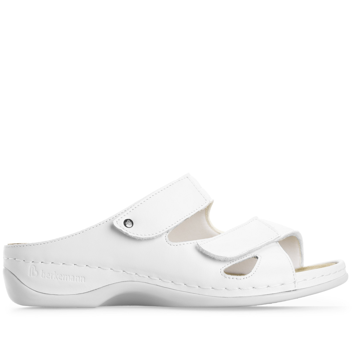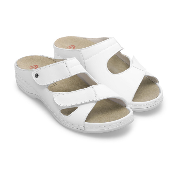 Berkemann Janna — женские ортопедические пантолеты из мягкой натуральной кожи с эластичными текстильными вставками для комфортной посадки. Летняя модель особенно хорошо подходит, когда важно минимизировать давление на стопу и риск натираний. Два ремешка на липучках Velcro позволяют легко подстроить объем под полноту стопы, а подкладка из натуральной кожи и текстиля обеспечивает деликатный контакт с телом в течение всего дня. Легкая полиуретановая подошва делает сандалии удобными для повседневного ношения в теплый сезон.
