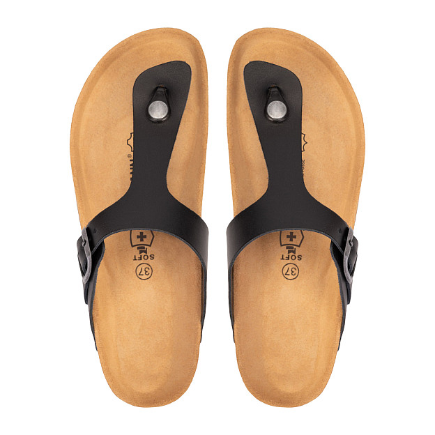 Стелька сандалий выполнена из композитного материала на основе натуральной пробки, отличается гибкостью и прочностью. Верх выполнен из натуральной кожи, поверхность стельки выполнена из мягкой велюровой кожи, не вызывает аллергии. Легкая рифленая подошва из полиуретана не скользит, обеспечивает дополнительную безопасность при ходьбе.