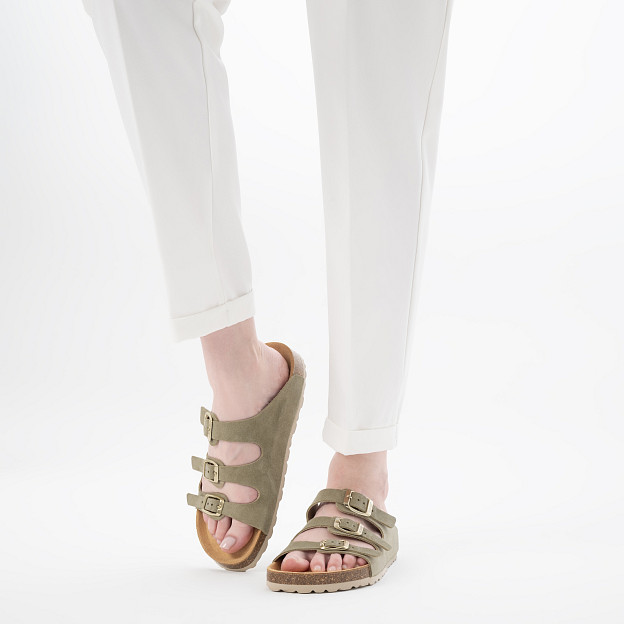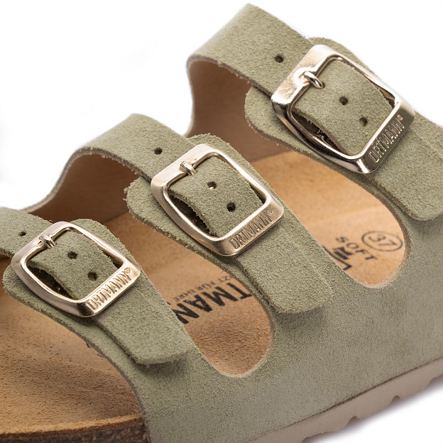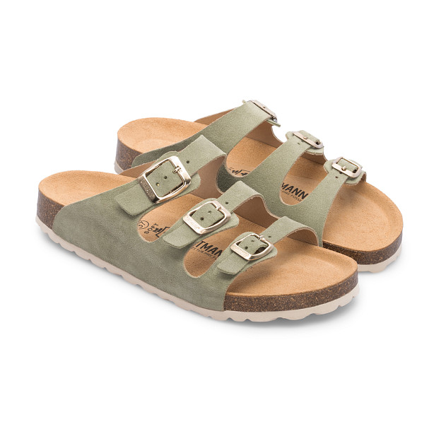 Женские ортопедические пантолеты Ortmann Marcel – комфортная модель из натуральной замши на трех ремешках, подходящая для повседневного ношения и долгих прогулок на природе и в городе.