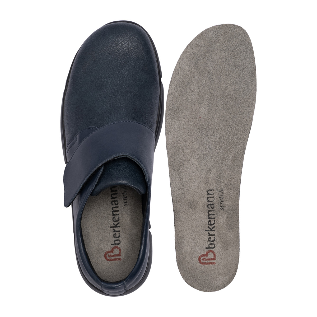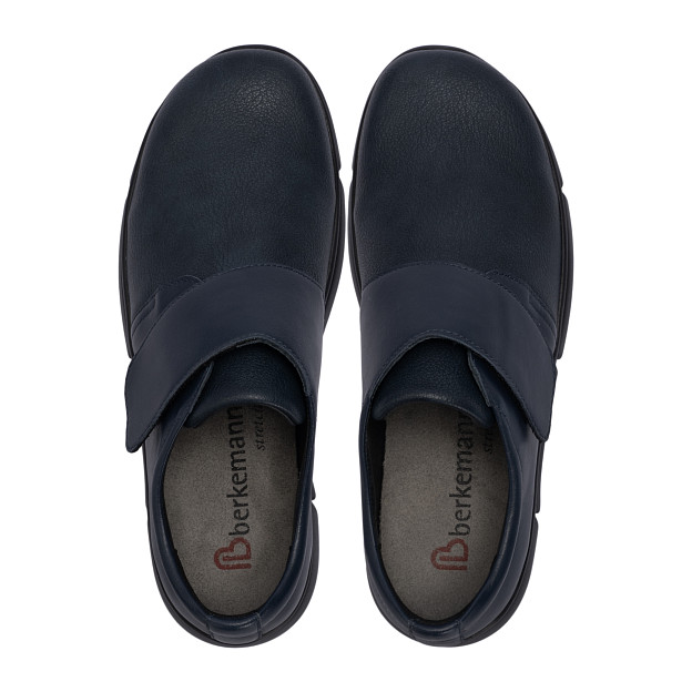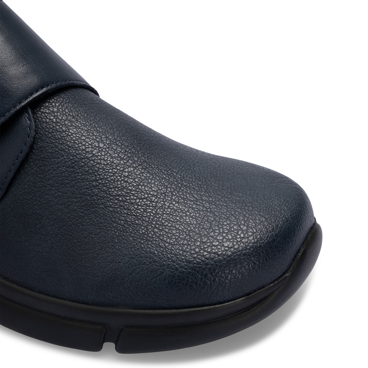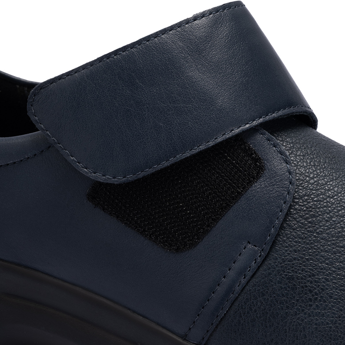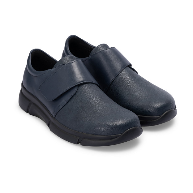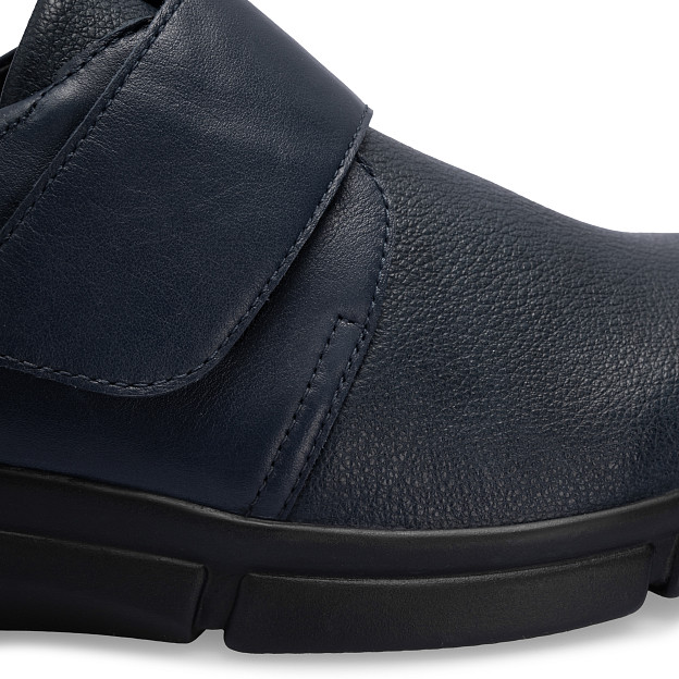 Стрейчевый мыс подстраивается под «сложные» участки стопы, а застежка на липучке Velcro помогает быстро зафиксировать обувь и отрегулировать посадку по подъему. Внутренняя отделка из натуральной кожи и текстиля создает комфортный микроклимат, а легкая полиуретановая подошва делает пару удобной для долгой ходьбы. Пятифазная стелька поддерживает стопу на каждом этапе шага и помогает снизить утомляемость к концу дня.