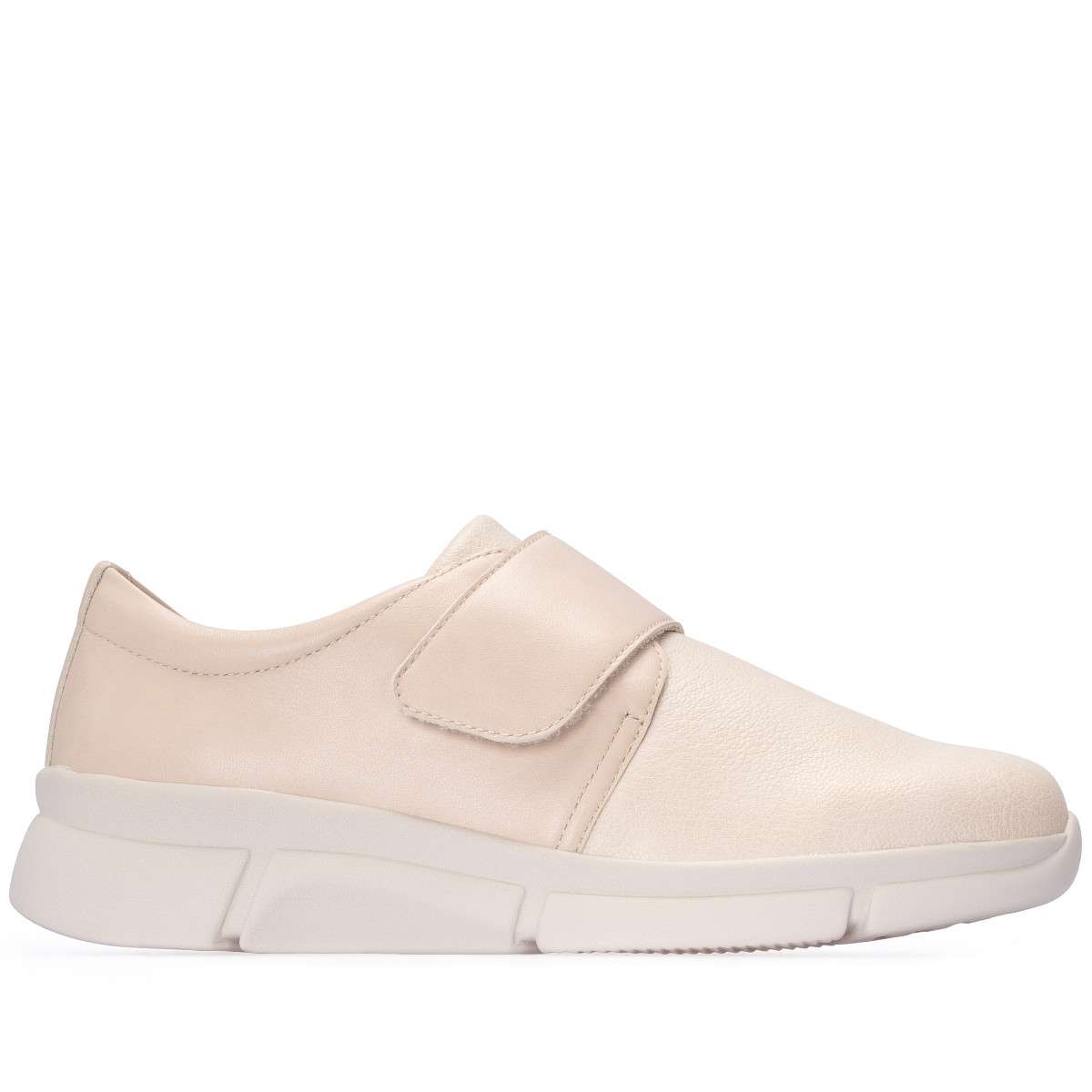Стрейчевый мыс подстраивается под «сложные» участки стопы, а застежка на липучке Velcro помогает быстро зафиксировать обувь и отрегулировать посадку по подъему. Внутренняя отделка из натуральной кожи и текстиля создает комфортный микроклимат, а легкая полиуретановая подошва делает пару удобной для долгой ходьбы. Пятифазная стелька поддерживает стопу на каждом этапе шага и помогает снизить утомляемость к концу дня.