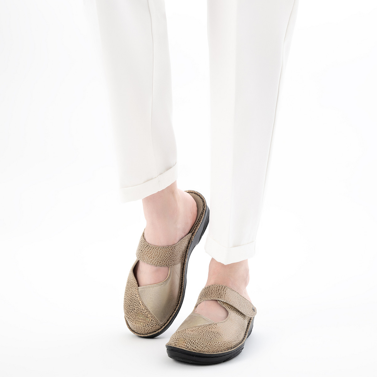 • ремешок на липучке Velcro позволяет быстро подстроить посадку сабо под особенности стопы и возможные отеки;