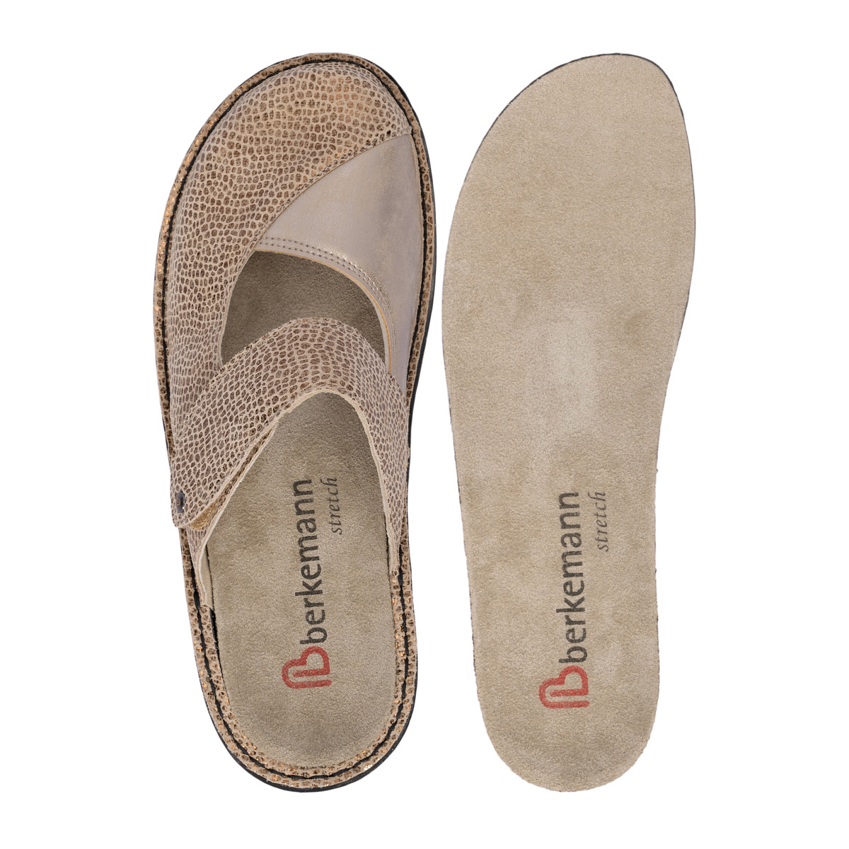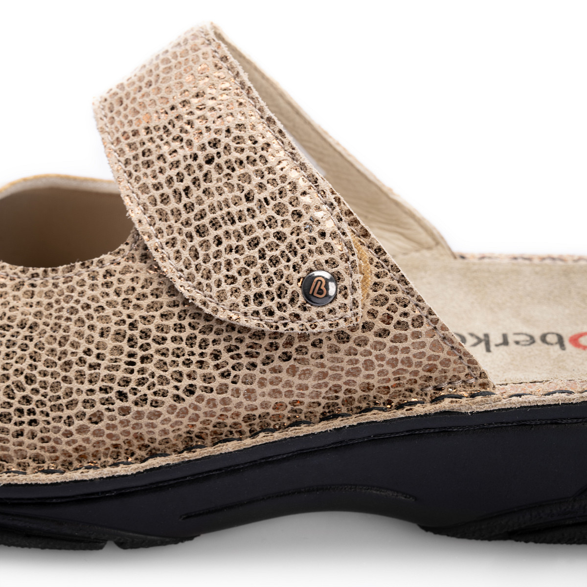 Ортопедические женские сабо Berkemann Heliane с пятифазной стелькой подходят для тех, кто любит лаконичную, но продуманную до мелочей обувь. Верх состоит из комбинации натуральной кожи и эластичного текстиля и мягко подстраивается под стопу, а открытая пятка делает модель особенно комфортной в летнее время года.