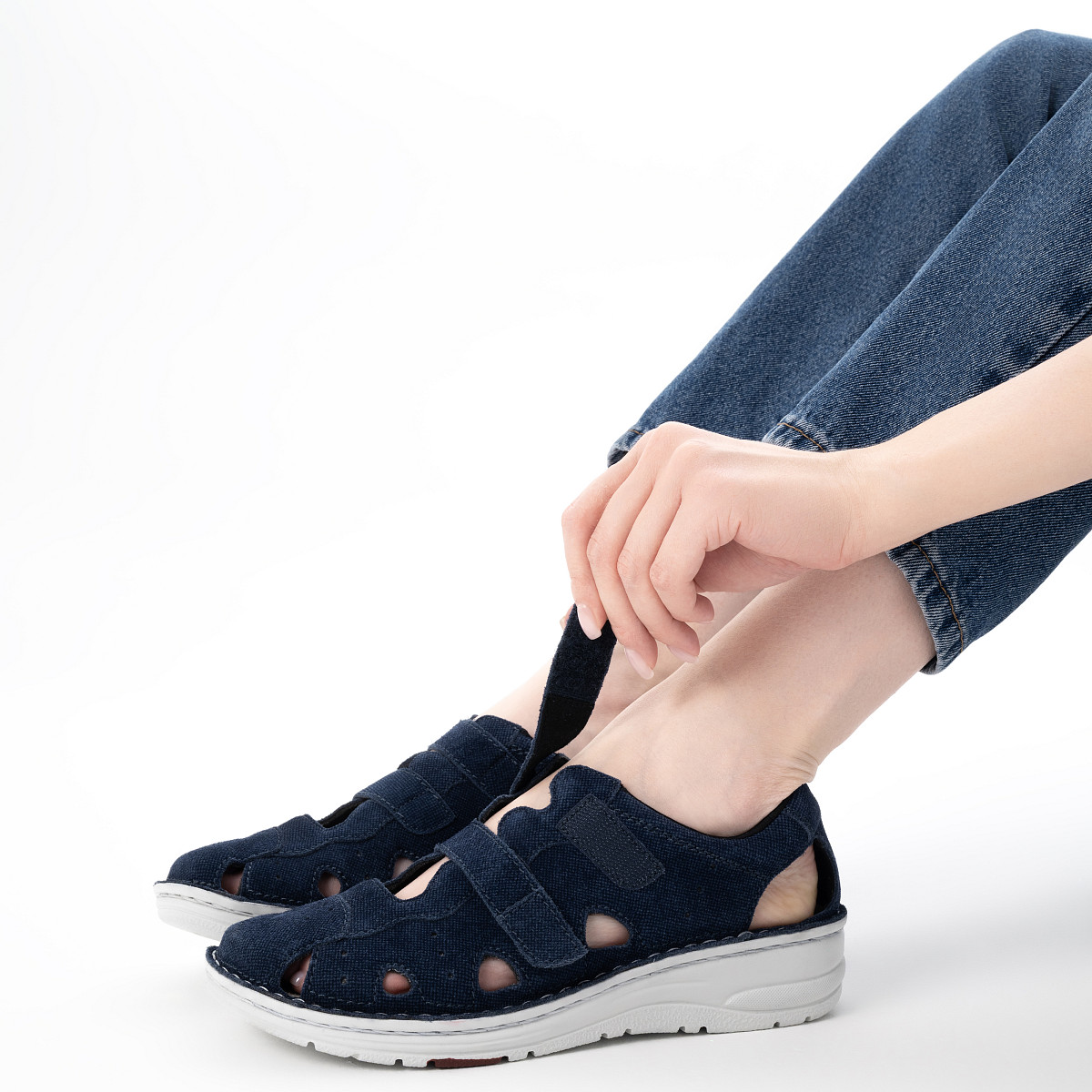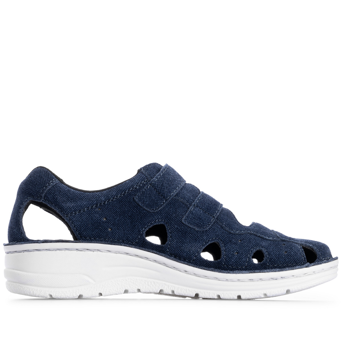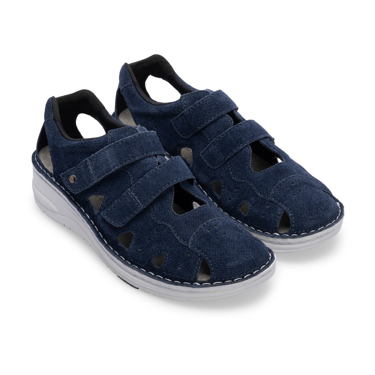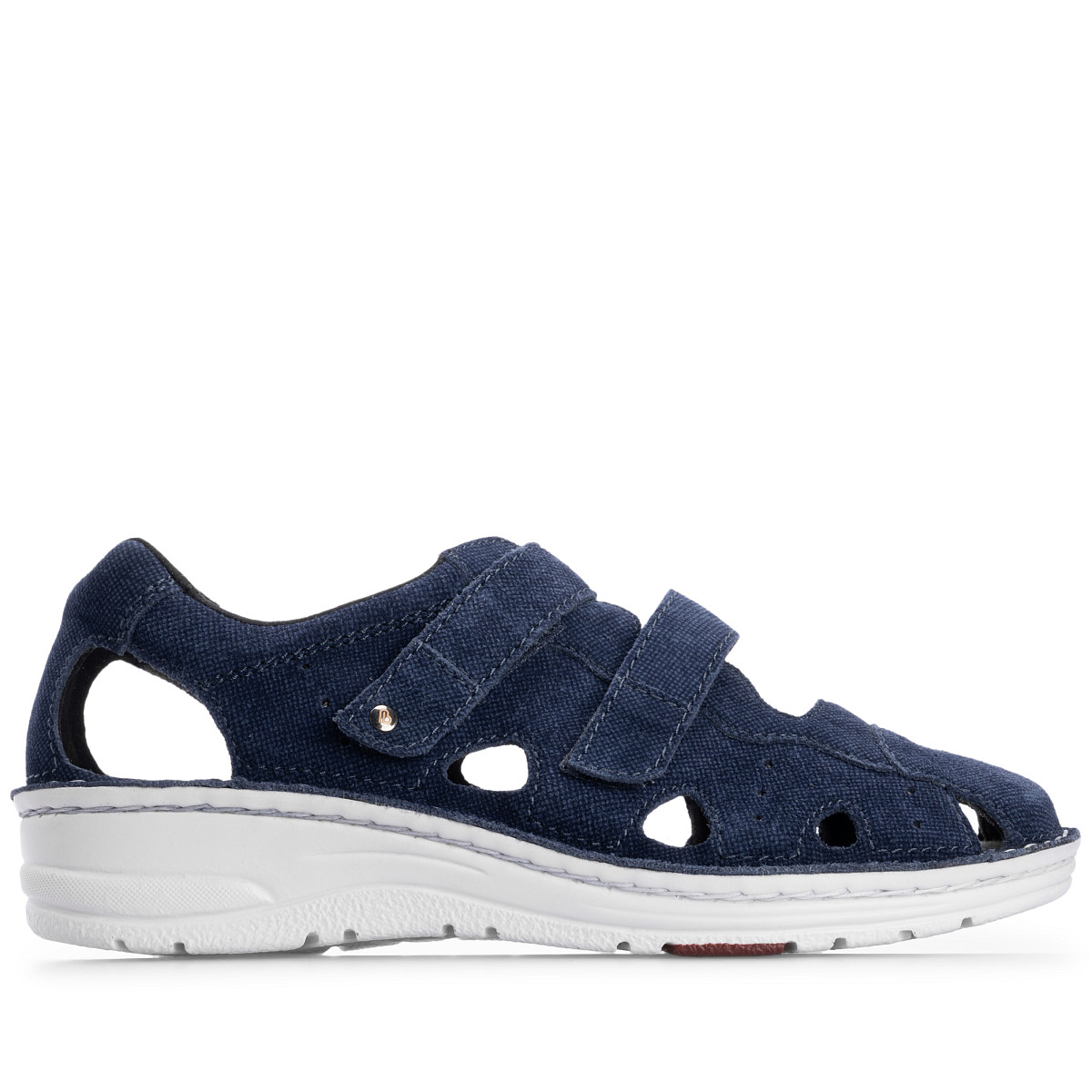 Berkemann Larena — женские ортопедические сандалеты из натурального нубука для активных прогулок и повседневной носки. Закрытый мыс надежно защищает пальцы, а закрытая пятка помогает лучше фиксировать стопу при движении по различным поверхностям. Две застежки на липучках Velcro позволяют быстро отрегулировать посадку по подъему и полноте, а перфорация в верхней части поддерживает комфортный микроклимат внутри обуви. Съемная пятифазная стелька с анатомической поддержкой сводов и аккуратная ручная строчка подчеркивают продуманный, практичный и в то же время современный характер модели.